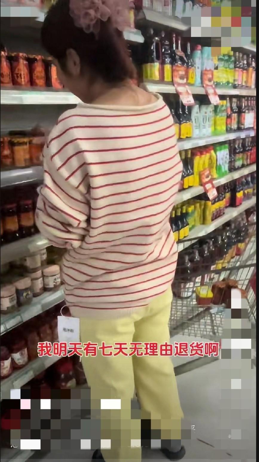 安徽一超市内,一女子穿着全新的衣服在超市内闲逛,衣服上的价格吊牌明晃晃的挂在外面。路过的男子见状十分疑惑,便当场询问女子,衣服吊牌为什么不摘掉。没想到女子的回答让人大跌眼镜,她理直气壮地表示:“我不想拿,我明天有七天无理由退货”……