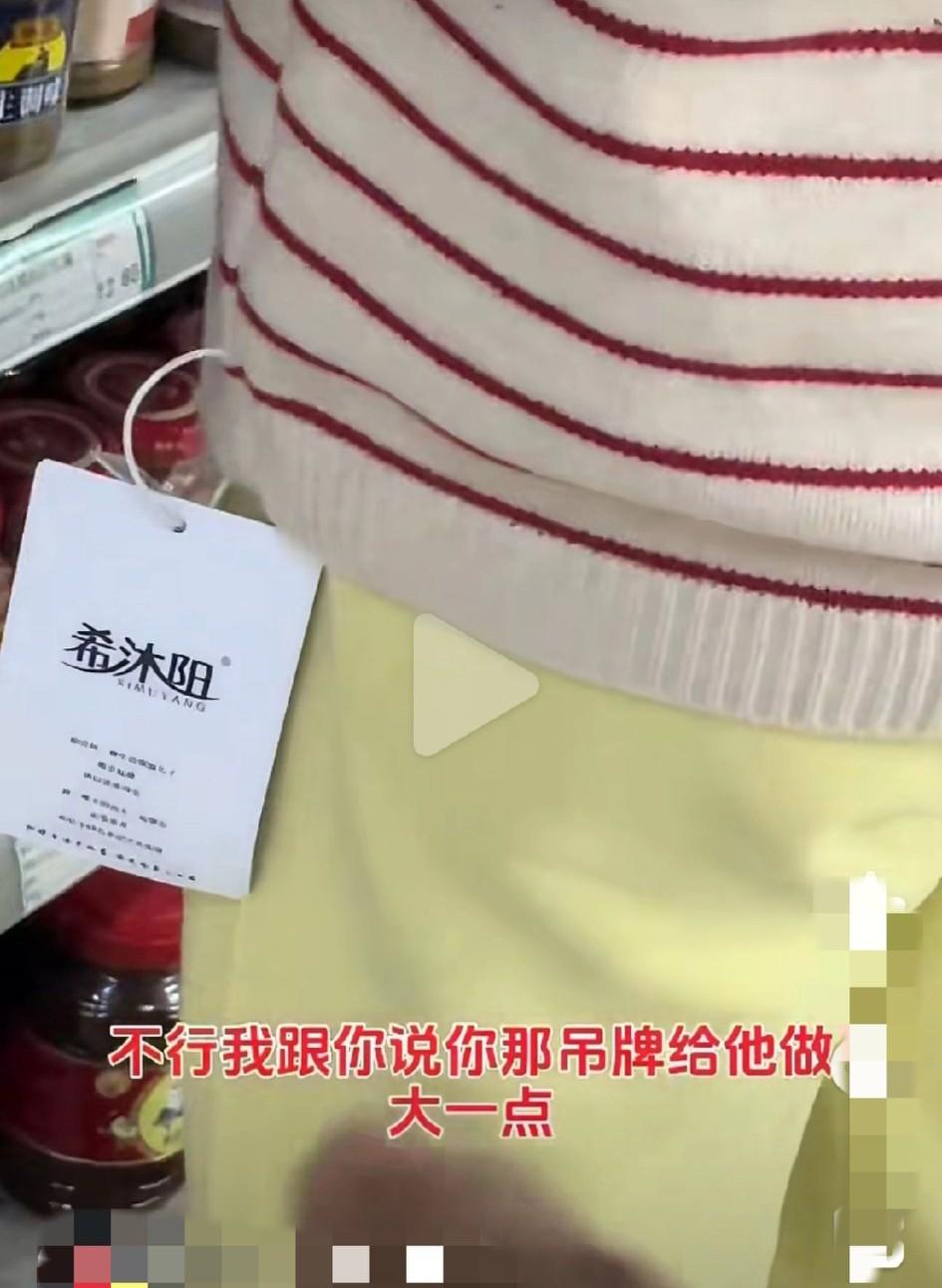 拍视频的男子建议做服装的厂家以后“吊牌做的更大一点”,可视频里面这吊牌还不够大吗?人家不还是明晃晃的这么穿出来,人家根本不在乎别人怎么看自己,你做的再大又有何用?