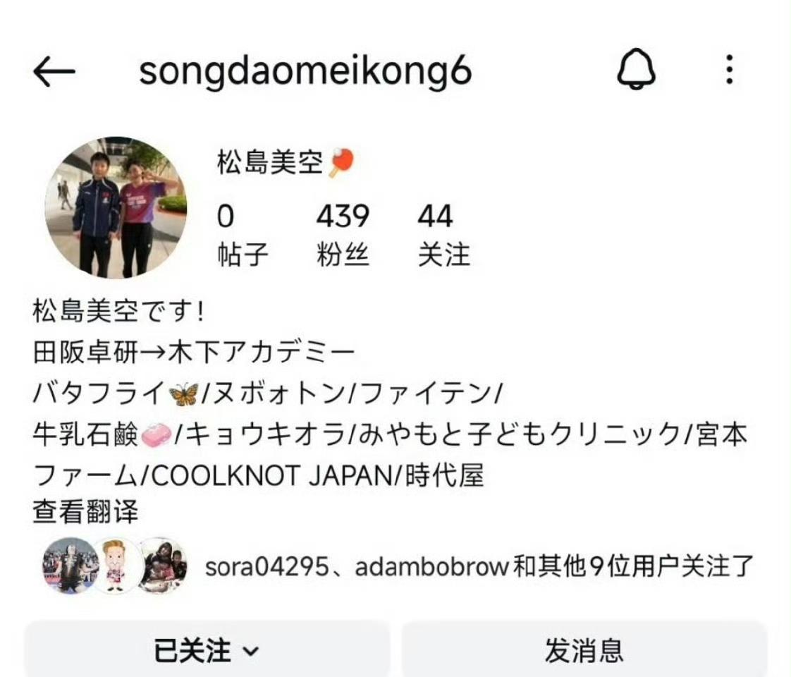 13岁的日本天才少女松岛美空,直接把社交账号头像,换成了和孙颖莎的合影。
