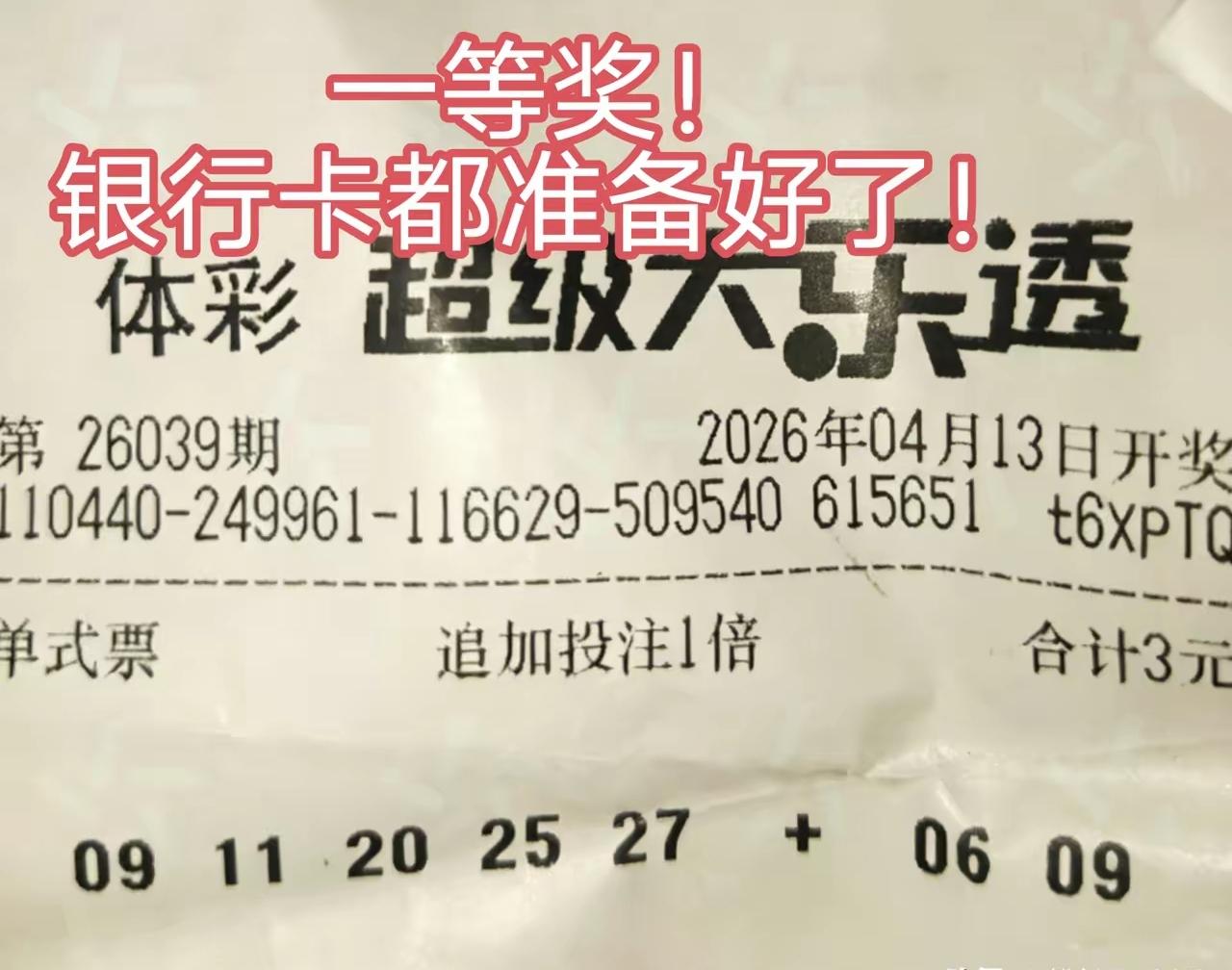 昨晚,大乐透第26039期刚开完奖,网上就炸出了一张“神票”。一张来自河南的3元追加单式票,前区号码09、11、20、25、27,后区06、09。结果你猜怎么着?