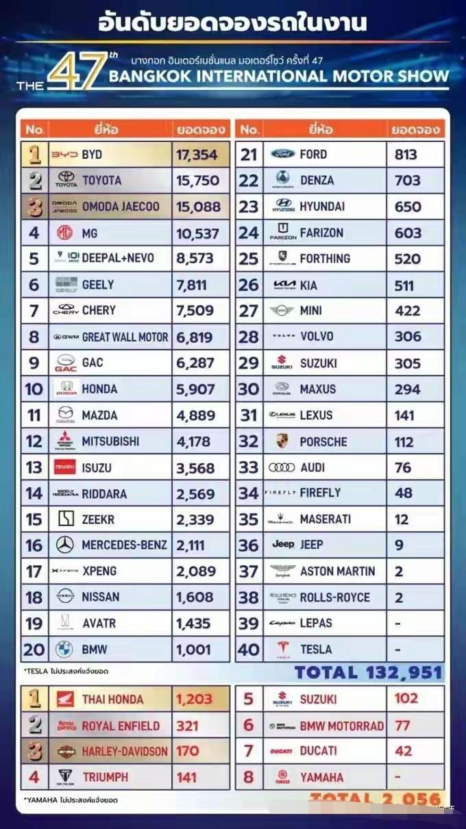 2026年4月曼谷车展,中国品牌总预订量第一次压过日系。六十年头一回。