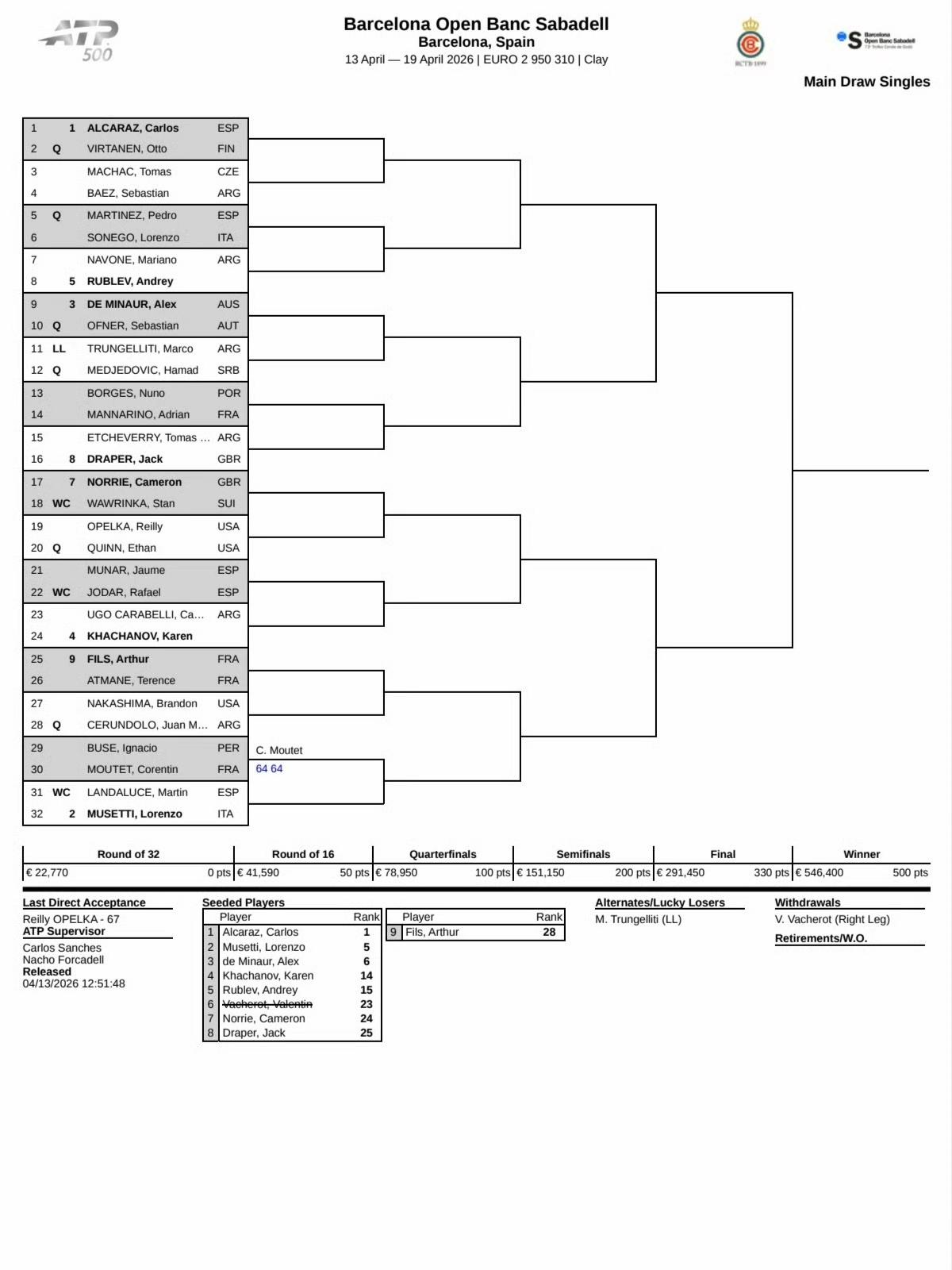 大满贯之外,ATP500巴塞罗那公开赛是阿卡最喜欢的比赛之一。如果夺冠,阿卡将重返世界第一。