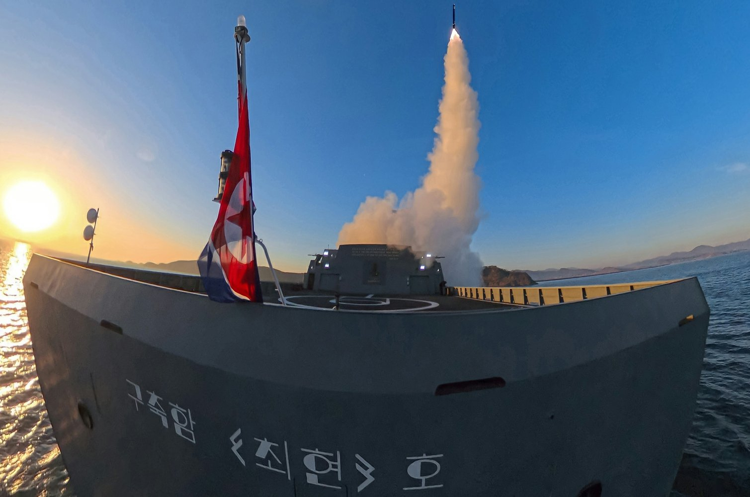 朝鲜海军4月12日再次进行崔贤号驱逐舰的武器系统测试,共试射了 2 枚箭矢战略巡航导弹和 3 枚反舰导弹。