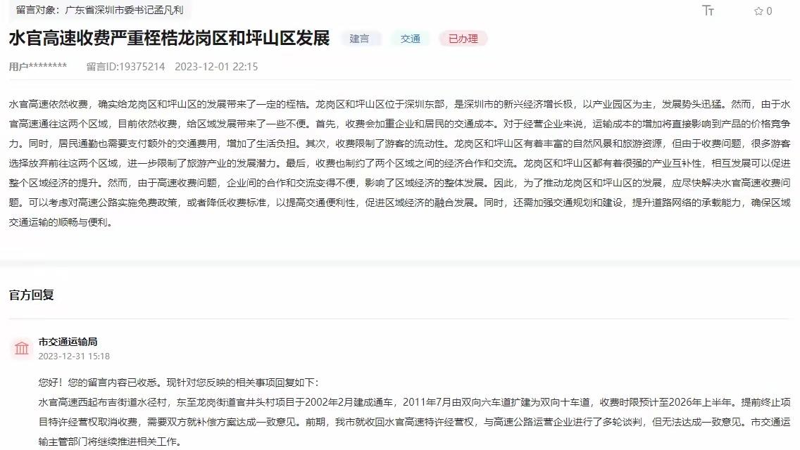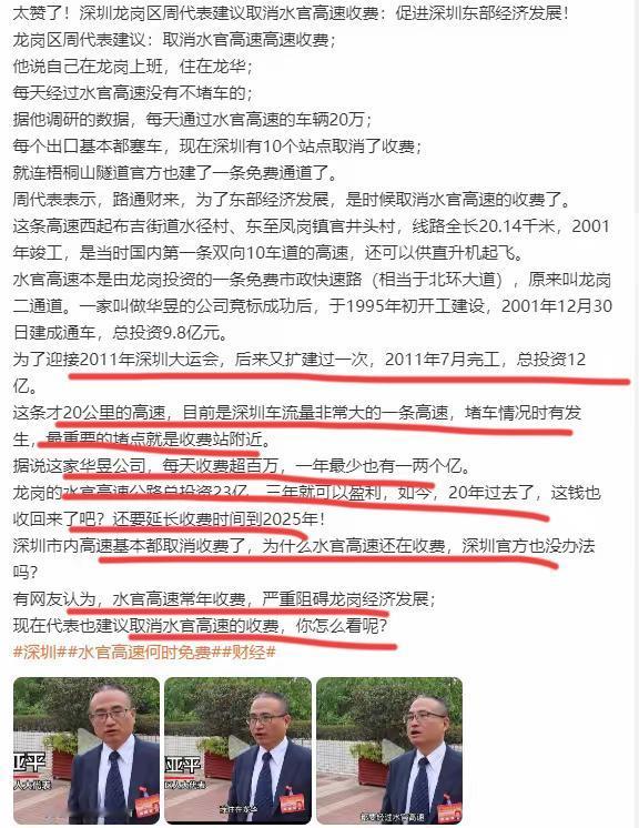 网友说,就是这条收费高速,严重制约了龙岗和东部经济的发展;