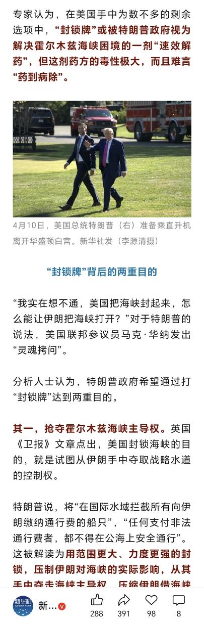 新华社说得很清楚,打“封锁牌”,特朗普有两个核心目的。