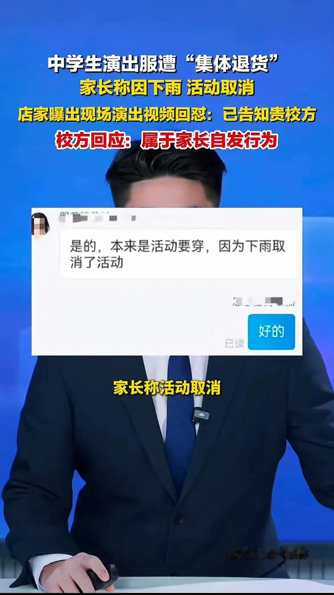 演出服遭集体退货家属称表演取消演出服退货也是重灾区了,虽然学校没有统一购买,但是