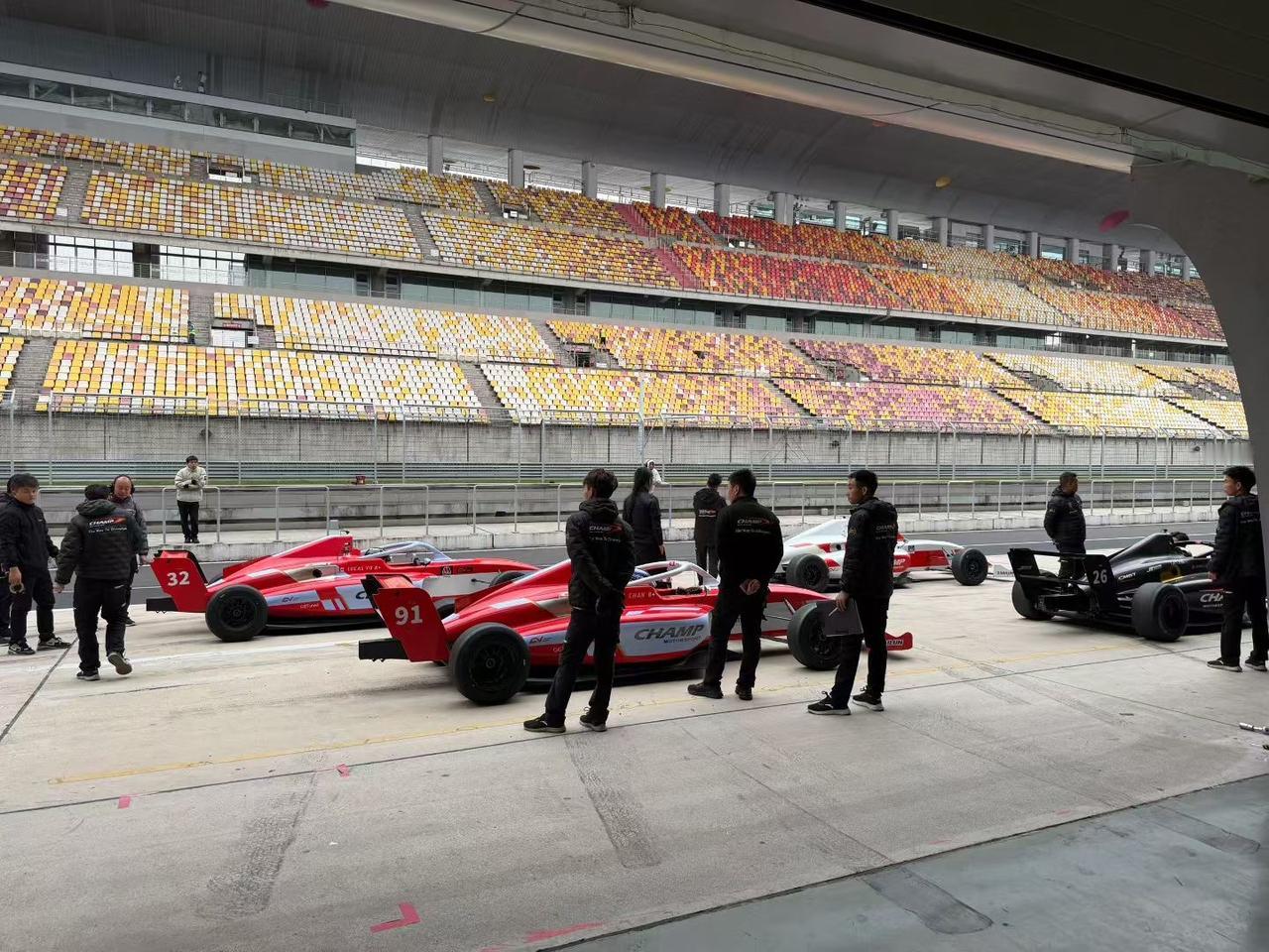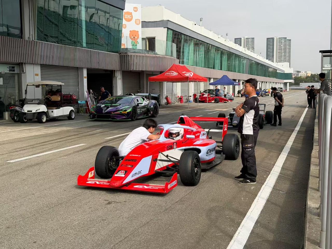 赛道边的围场更是热闹,F4的赛车比F1小一圈,银红蓝绿各种配色的单座赛车排得整整齐齐,但车手们坐进座舱、戴上头盔的瞬间,你甚至能在休息区和刚比完赛的车手聊几句,这种接地气的感觉。