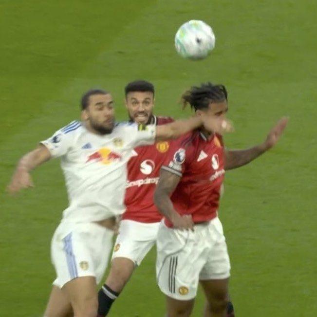 足球不允许对抗了吗?还是英超整体变软了?利马摸了一下勒温的头发,也就半秒钟的时间图一被出示直红,这次对抗期间勒温拉拽利马脸部图二被裁判保罗·蒂尔尼视而不见… 足球的发展正在走向两个误区:禁区内手球判罚依据条例过多;空中对抗小动作越界度无明确规定 —— 这两点都是裁判“发挥”的空间。点评比赛的基恩和费迪南德还指出,利兹联第一球进程中,约罗空中被对手肘击图三应该也是吃牌动作。