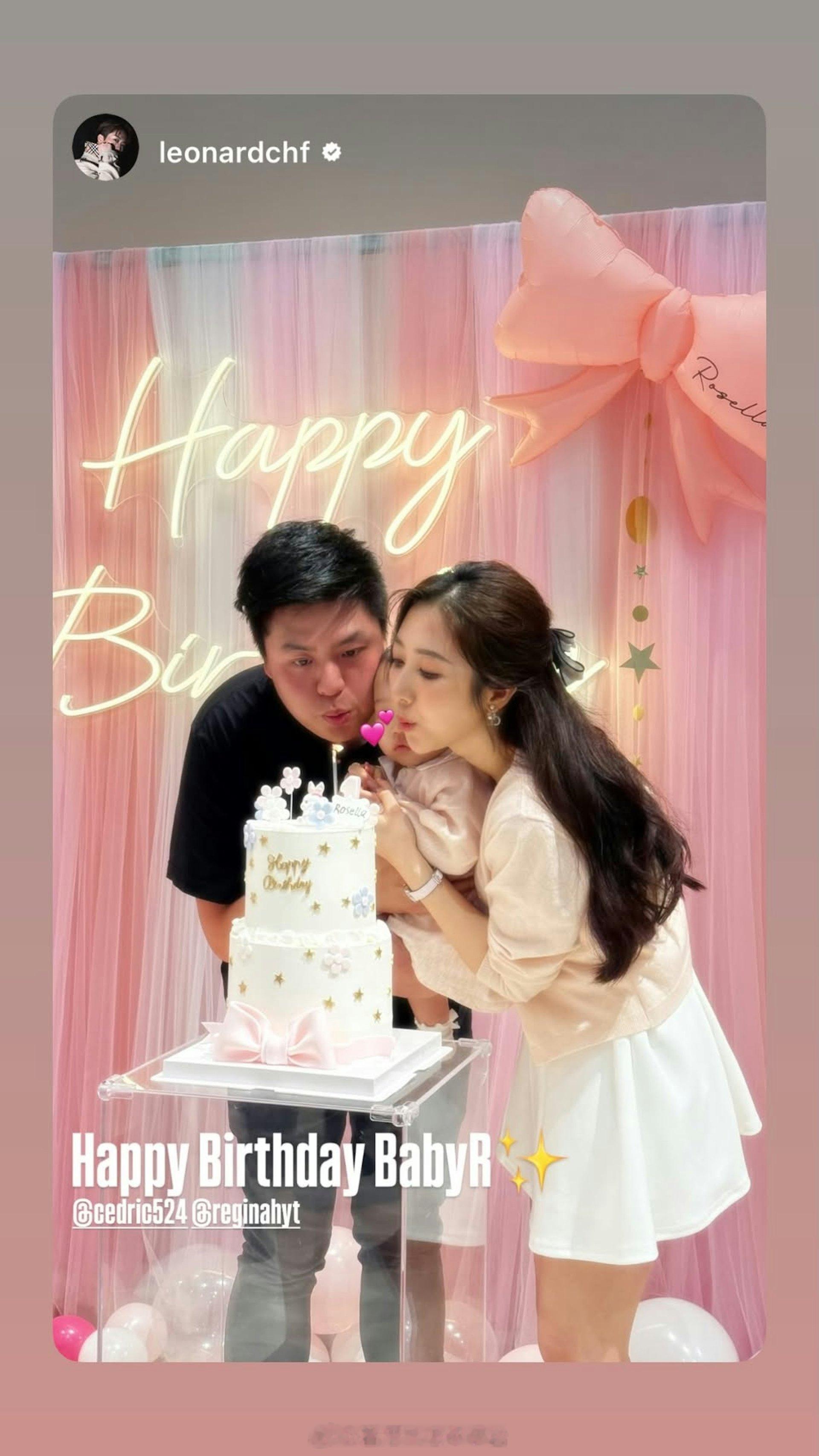 何依婷与老公一同为女儿吹熄蜡烛,画面温馨感人。身为新手妈妈,她一边忙着筹备派对,一边细心照顾女儿,全程亲力亲为,尽显母爱。