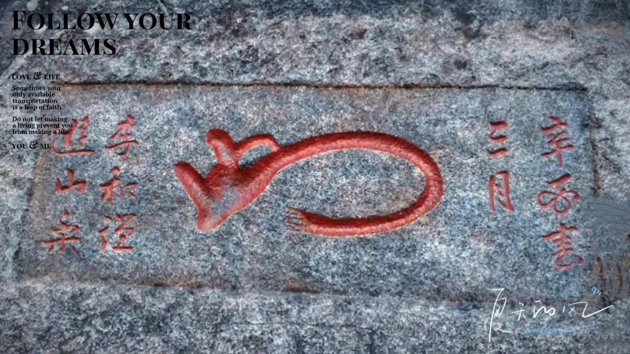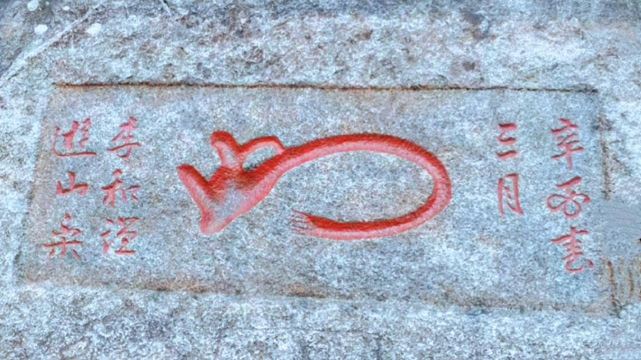 位于中天门到云步桥之间的“鼠碑”,1921年由客栈伙计李和谦所题。上款明确时间,下款记录他的游山乐,中间红色图案是草书“如意”连体字,因造型像老鼠也似如意得名,主流解读为“如意”,也有“如此河山”等说法,但最让人会心一笑的是它的日常感——出自普通伙计手笔,把登山愉悦和生活期许都刻进石纹里。