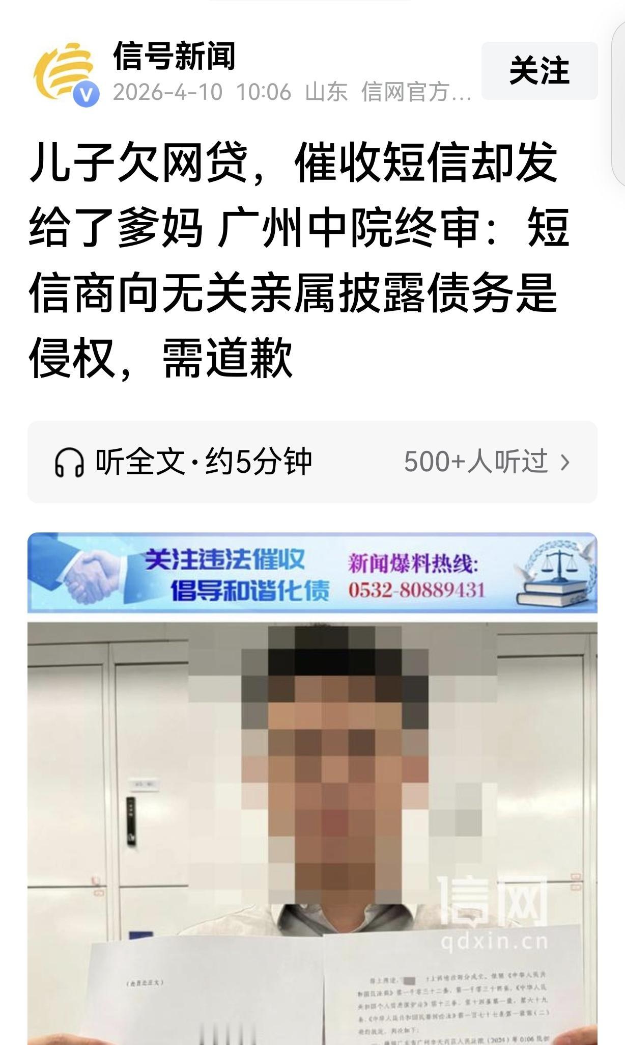 有网友评论说:“欠网贷该还,但催收也不能无法无天,泄露隐私太过分了,二审判决太解气!”