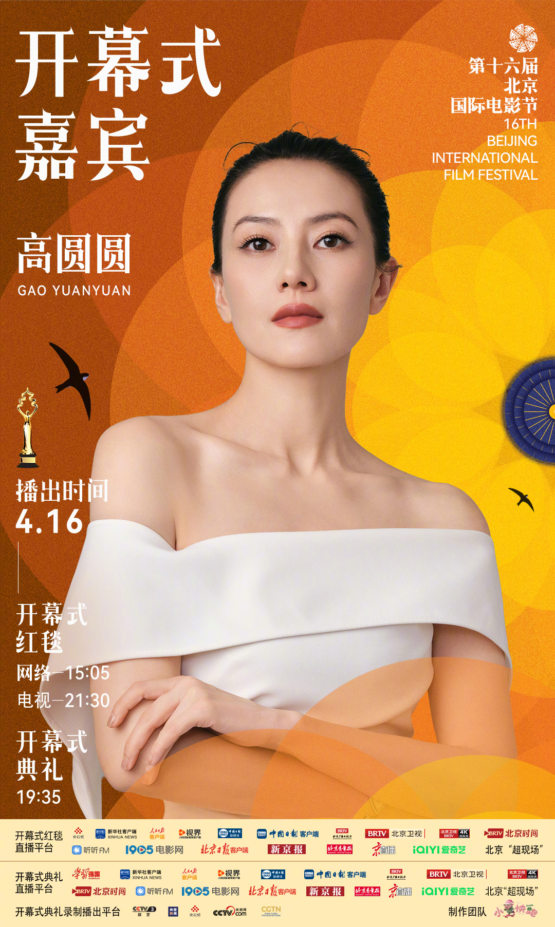 北影节开幕式第二波红毯阵容第十六届北京国际电影节开幕式第二波嘉宾阵容:高圆圆、江疏影、兰天奇、李雪琴、刘伟强、刘宇、马思纯、马天宇、宋佳、檀健次、夏之光、于和伟、喻言、张天爱、张晚意、张艺凡、周洁琼、祖峰(按姓名首字母排序)。