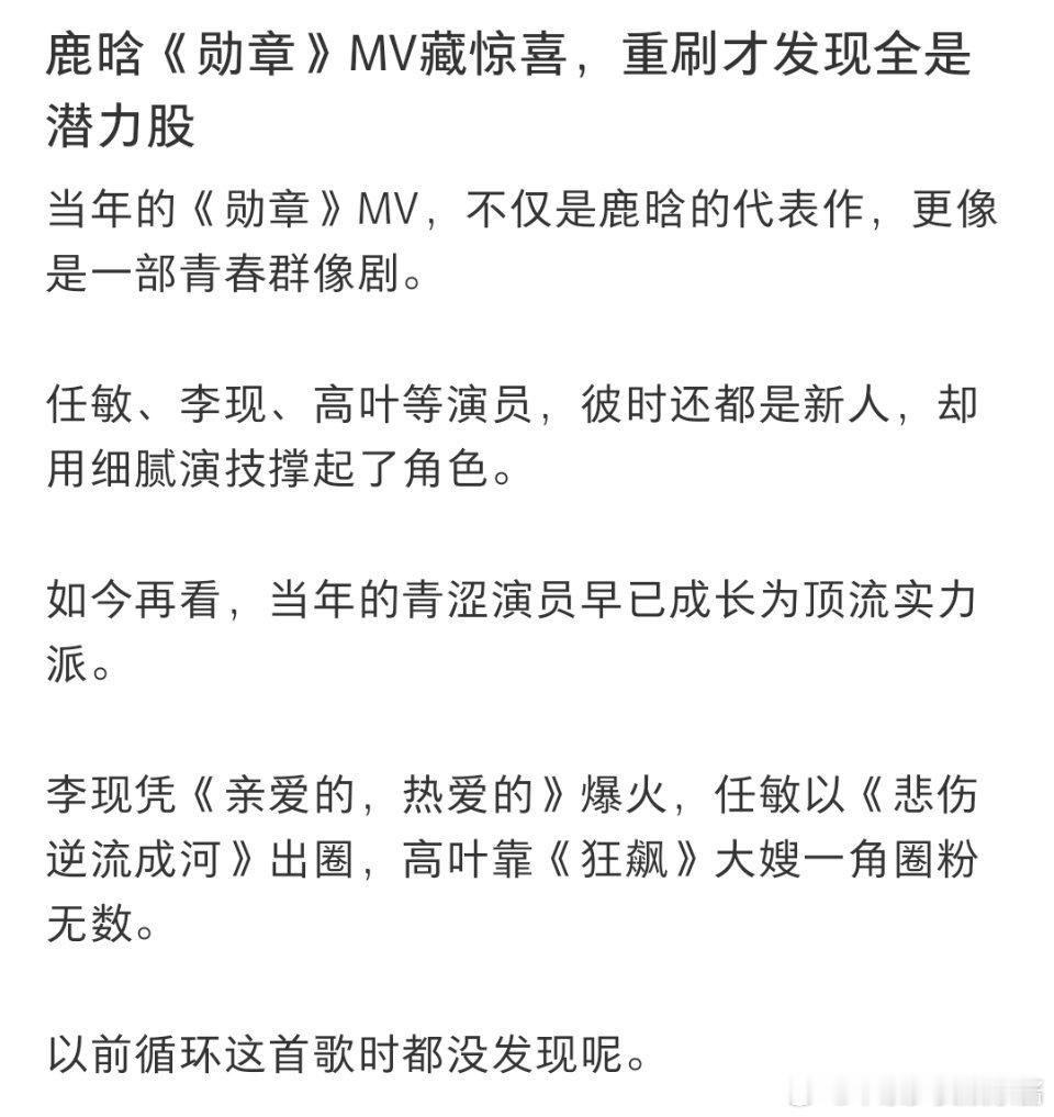 鹿晗《勋章》MV里竟全是潜力股: 高叶 任敏 李现