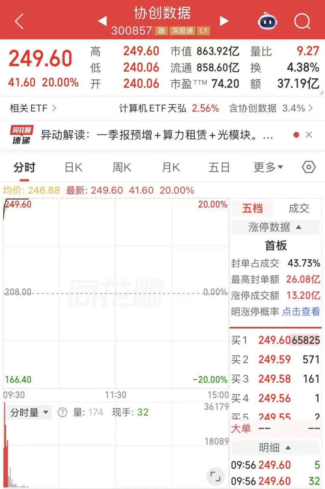 存储芯片板块表现强势,协创数据(300857)开盘4分钟内“20cm”涨停,大族激光、大为股份、盈新发展涨停,佰维存储涨超14%创历史新高,矽电股份、珂玛科技、壹石通、深南电路纷纷跟涨。