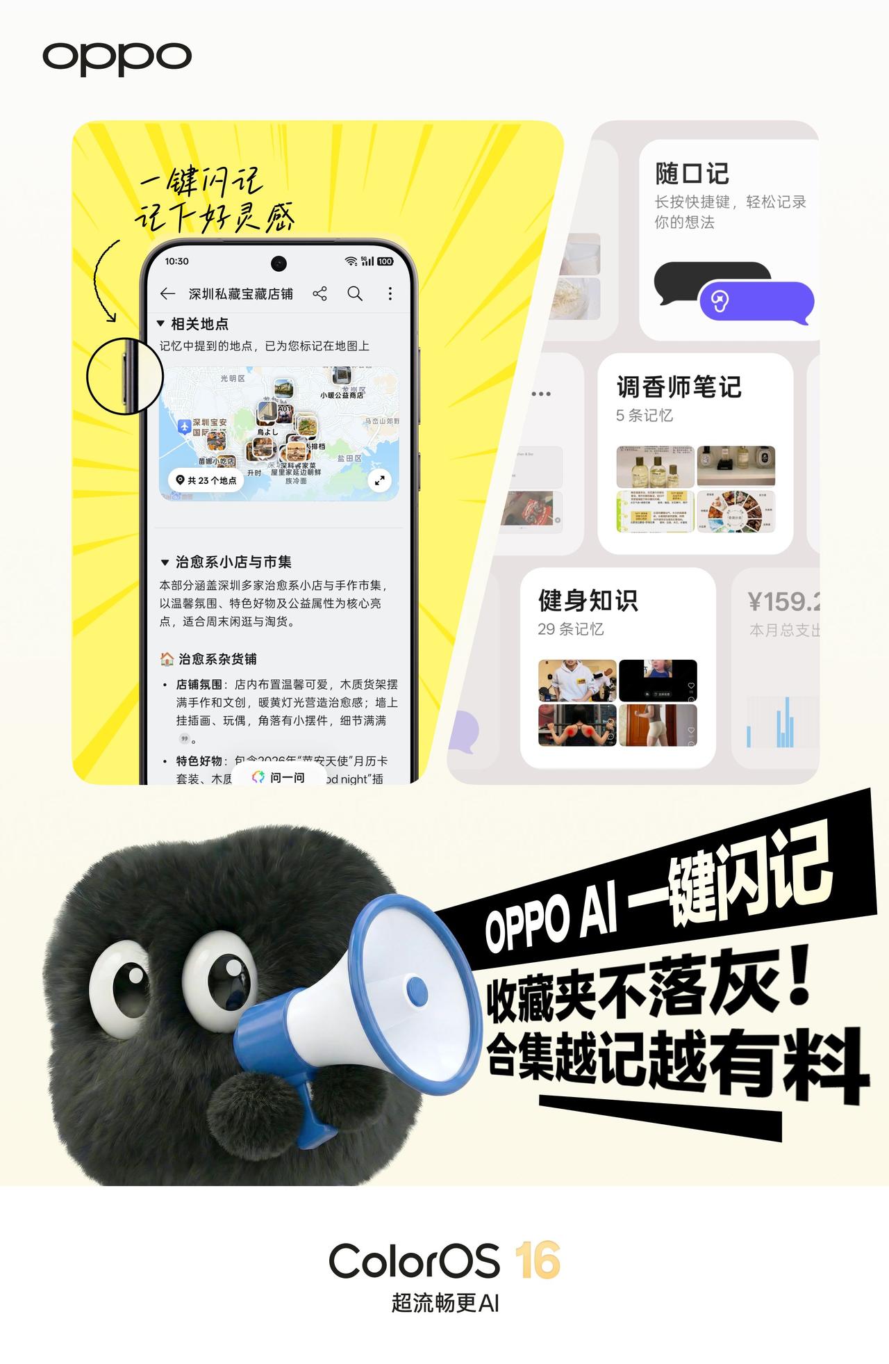 新一代 ColorOS 16 一键闪记功能上新: 一键闪记旅游攻略,一键生成旅行规划 一键闪记支持收藏夹合集分类 一键闪记大师模式参数,支持导入相机 一键闪记功能已经成为了 OPPO ColorOS 的王牌功能,同意吗?[不愧是你]