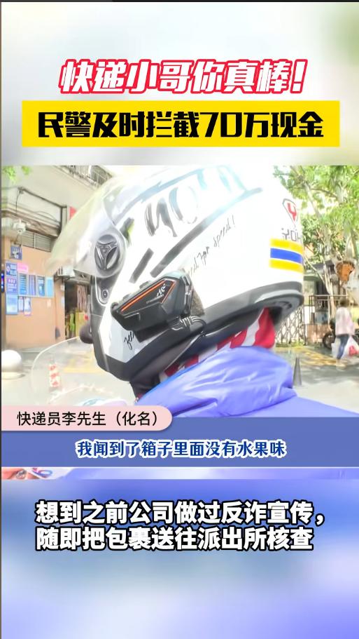 “70万保住了!”近日,重庆,一位快递员提着两个包裹到派出所报案。他说这两个包裹感不对劲,寄件人下的单子上是水果,可是确闻不出来,于是送到了派出所。警察联系了寄件人,当场打开吗,发现里面竟都是现金!网友:拯救了两个被骗的人!