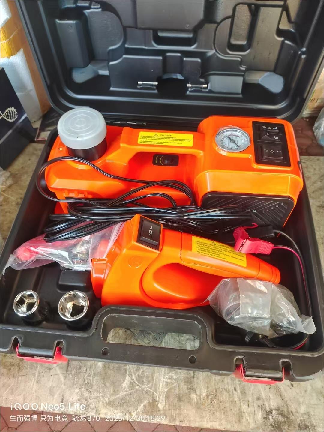 电动千斤顶上个月买的,不是图新鲜,是上次在高速上换胎,用手摇千斤顶蹲了二十分钟才把车顶起来,胳膊抖得拧不开螺丝。回去就下单套电动的,12V插点烟器就能用,盒子拿下来一摊就是反光三角牌。