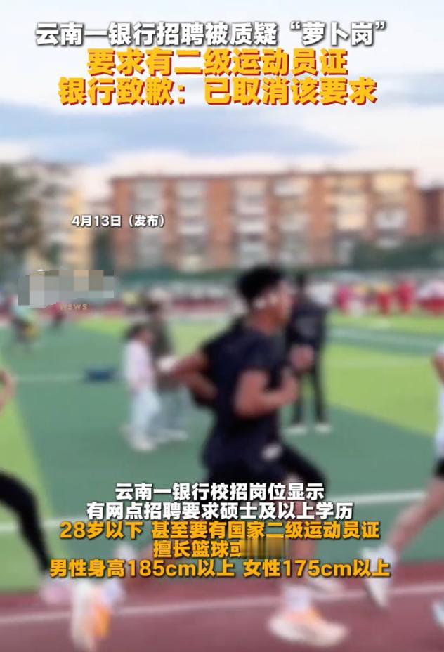 云南银行招聘因“二级运动员证”被全网质疑,官方火速道歉,直接取消所有争议要求!