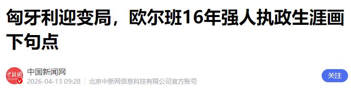 这也意味着,从2010年开始,连续执掌匈牙利16年的欧尔班时代,正式落下了帷幕。