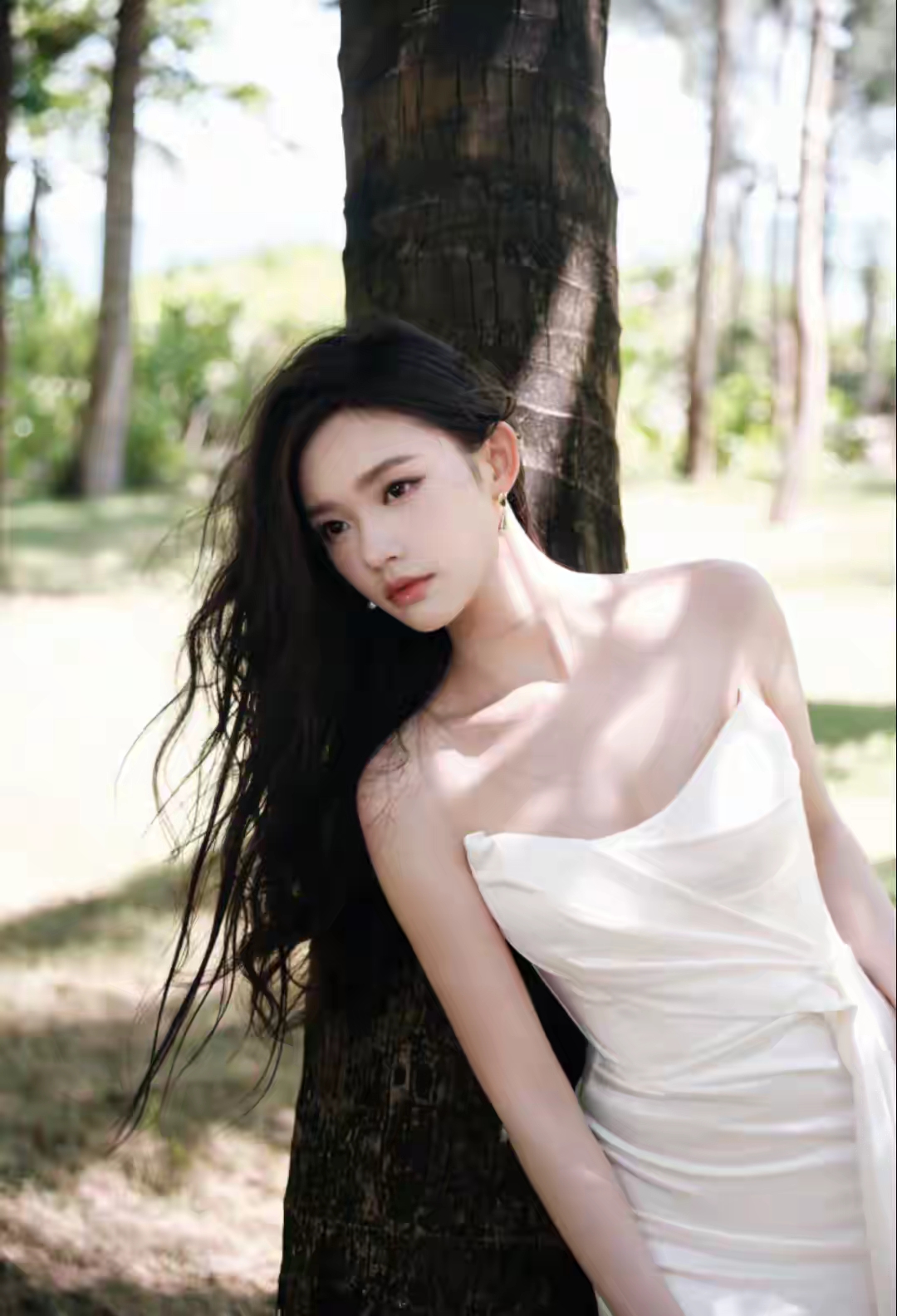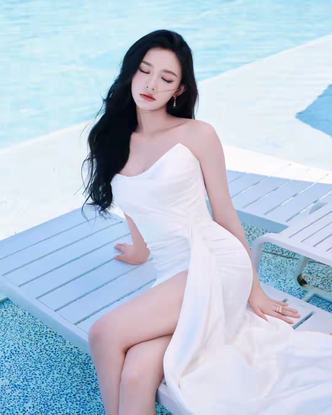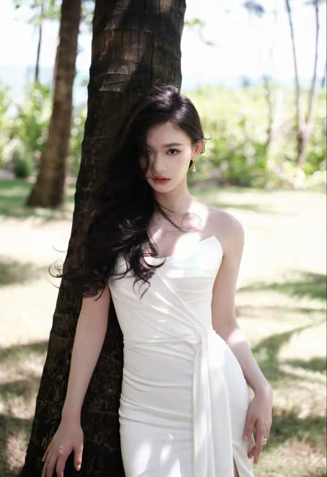 林允的海边随拍美到犯规!抹胸开叉裙+大波浪,氛围感拉满