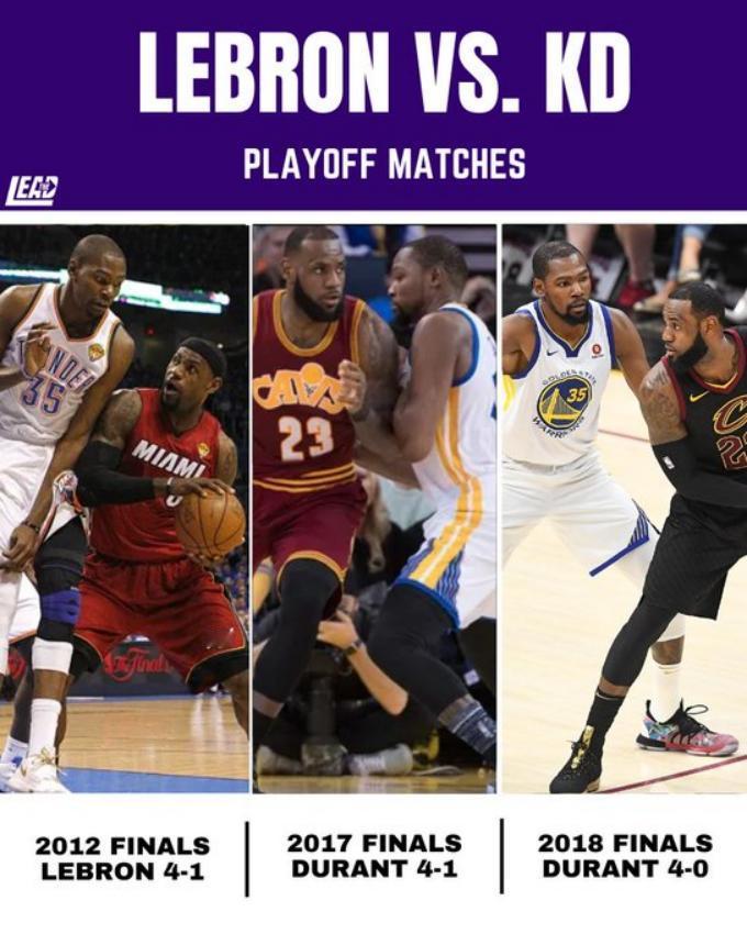 这是 2018 年总决赛后,詹姆斯与杜兰特再度在季后赛相遇。两人 14 次季后交手,詹姆斯场均 31.9 分,杜兰特 31.7 分,为 NBA 历史唯一交手 10 场 +、双双场均 30 + 的组合,堪称时代级进攻对话。