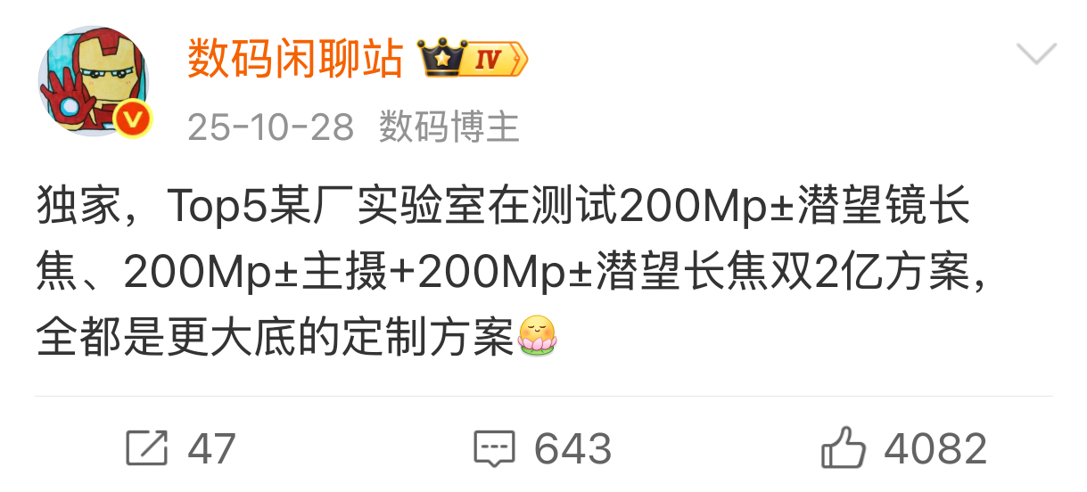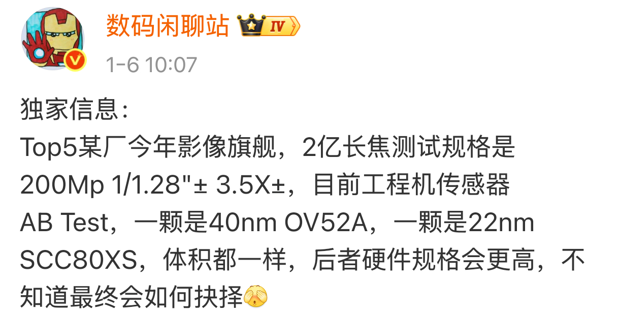 Tips:Find X9 Ultra也是200Mp 1/1.28"超大底潜望长焦,但晚华子一天发布……