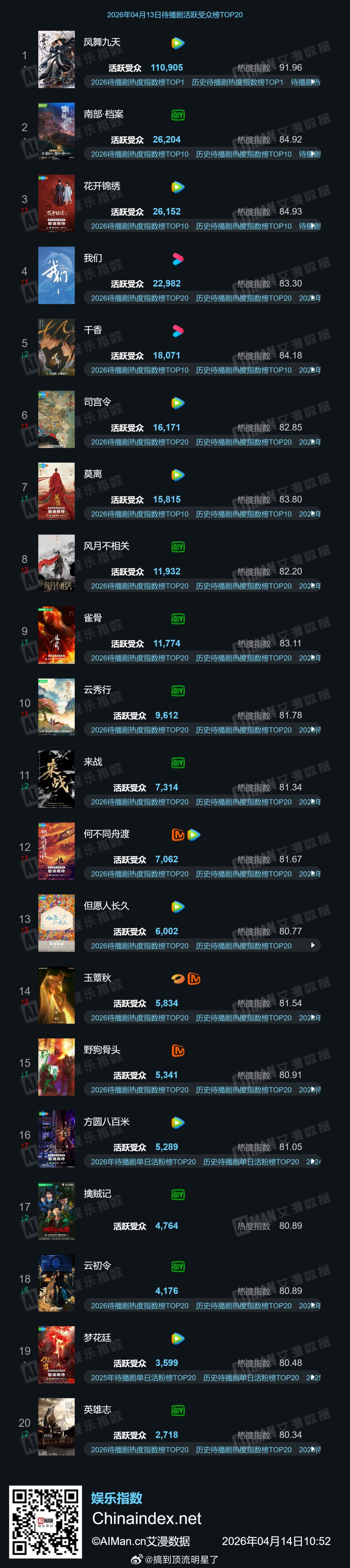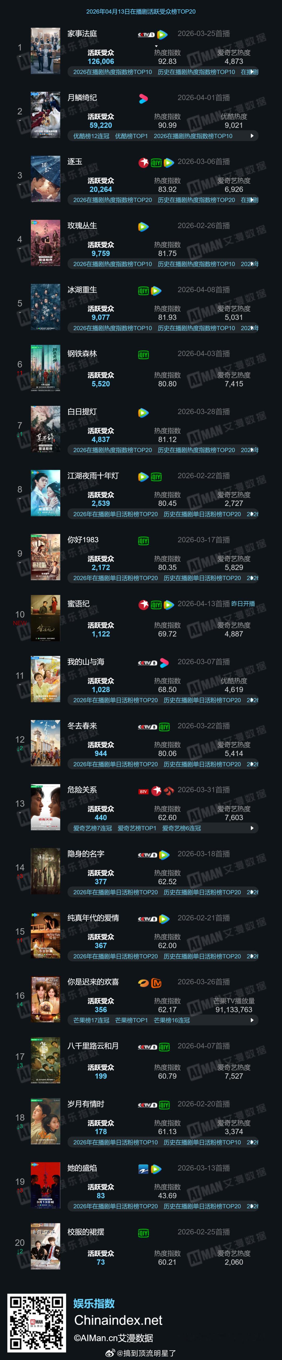 龚俊在播剧《家事法庭》和待播剧《凤舞九天》又又又又又屠榜了,活跃受众双双TOP,角色热度亦双双TOP,《家事法庭》大结局活跃受众更是创新高了,爆款剧的活人真多啊家事法庭