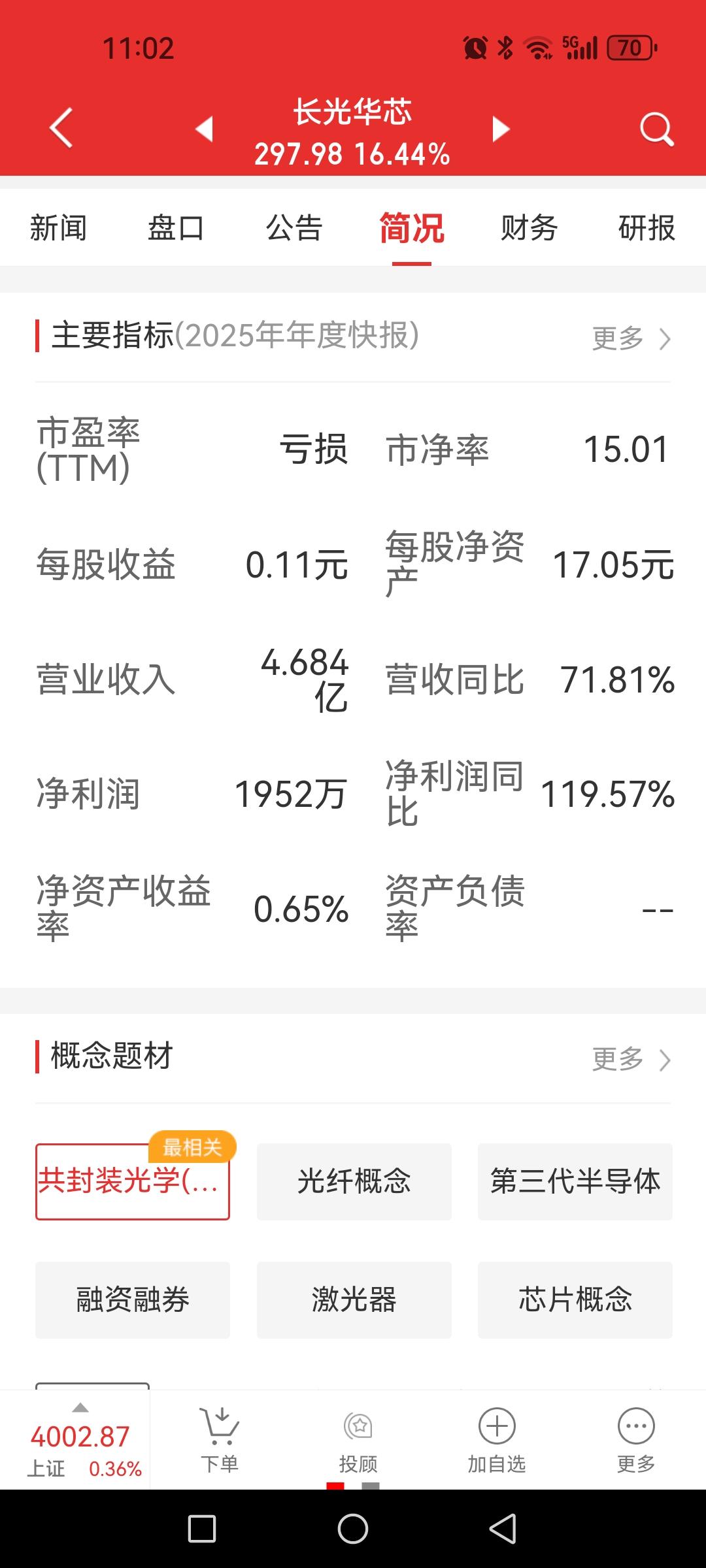 长光华芯,营收4.6亿元,利润1952万元,股价近300元,散户叹息真是“贫穷限制了富贵的想象”。