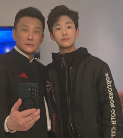 在后台,王斑拉着儿子自己合照。作为王斑和曹颖的儿子,王子高度继承了父母的优良基因,长得眉清目秀,又不乏英气!