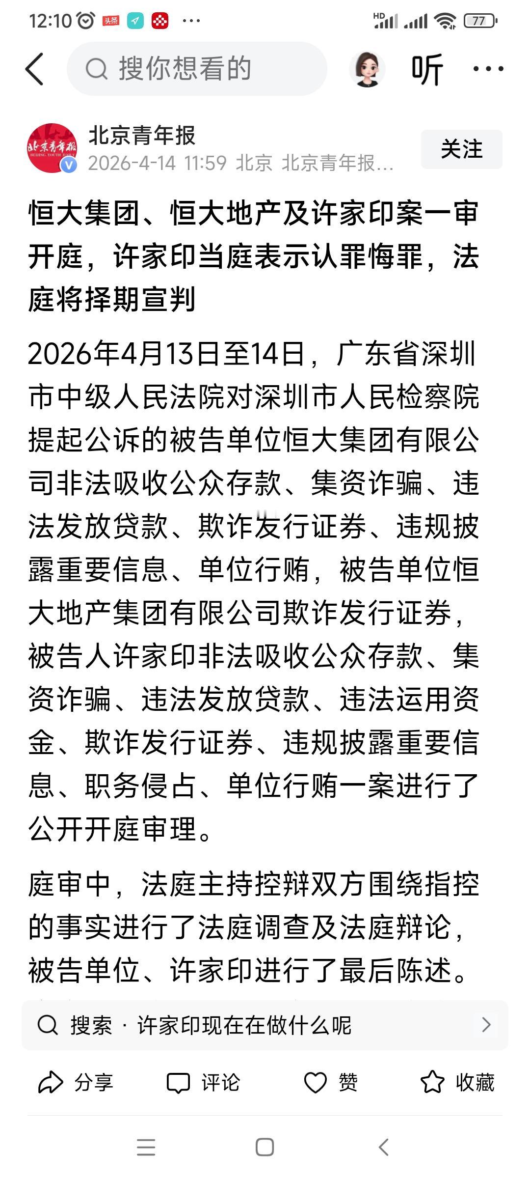 许家印刚刚在深圳当庭认罪悔罪,择期宣判+最高可判无期徒刑。曾经,恒大成为唯一一家
