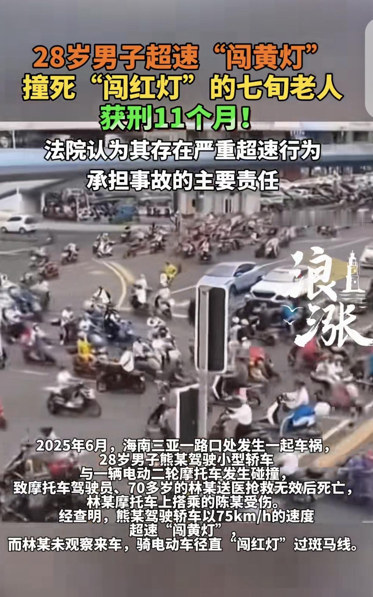 “这就是不守规矩的代价!”海南三亚,一28岁男子,开车以75km/h的速度闯黄灯,正巧,一70岁大爷载个人,骑着摩托闯红灯,结果悲剧了,大爷被小伙撞飞,送医抢救无效身亡,后座上的人受伤,男子被判处有期徒刑11个月,他不服提起上诉,认为大爷闯红灯才被撞,他罪不至11个月。二审判决出乎意料。