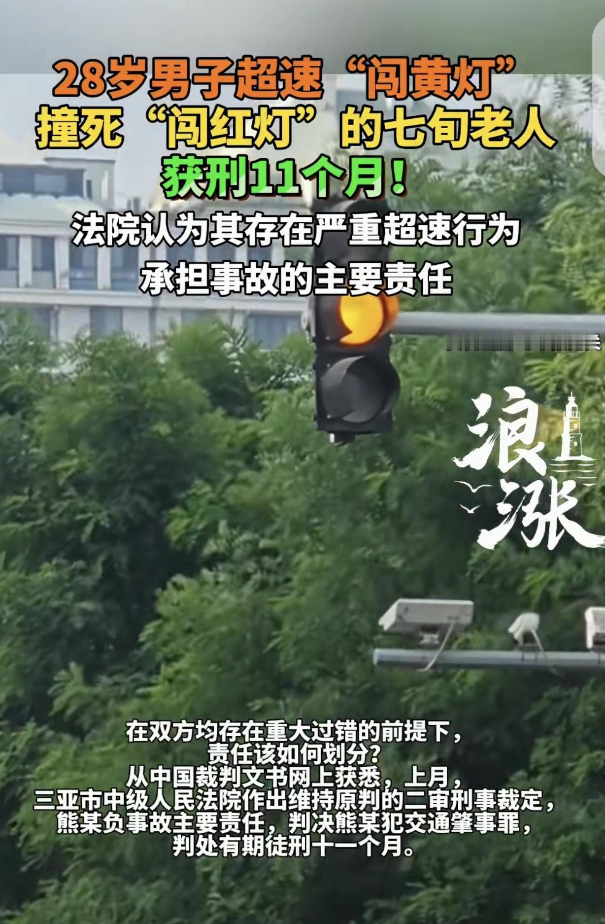 经过调查取证,法院认定熊先生在黄灯时未减速观察路口情况,以较高速度通过,对事故的发生负有一定责任,最终判处他有期徒刑11个月。