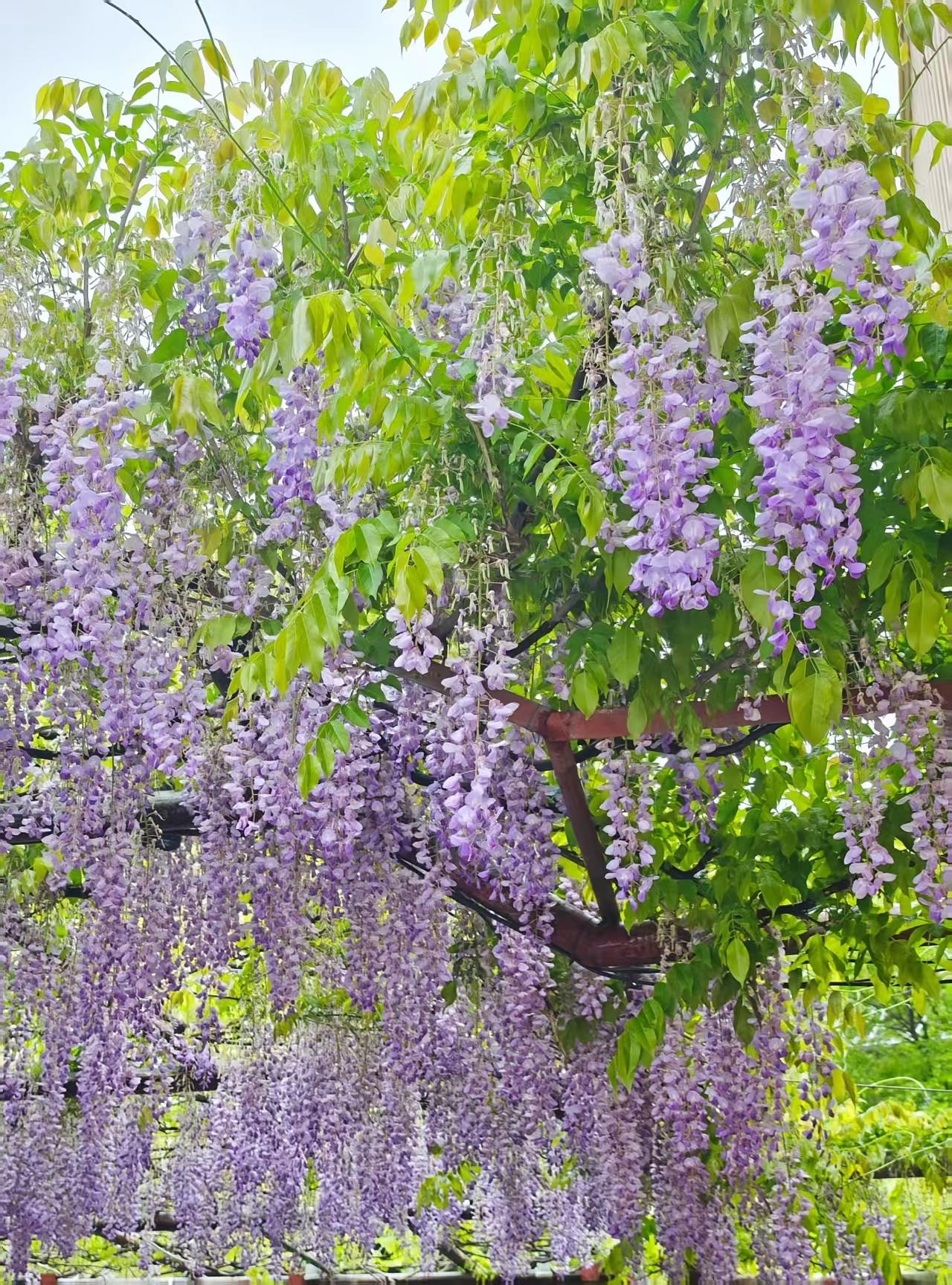 从未见过开得这样盛的藤萝,只见一片辉煌的淡紫色,像一条瀑布,从空中垂下,不见其发端,也不见其终极——宗璞《紫藤萝瀑布》 (以瀑布为喻,展现紫藤花繁茂、连绵不绝的壮观之美,让人感受到生命的蓬勃与力量。)
