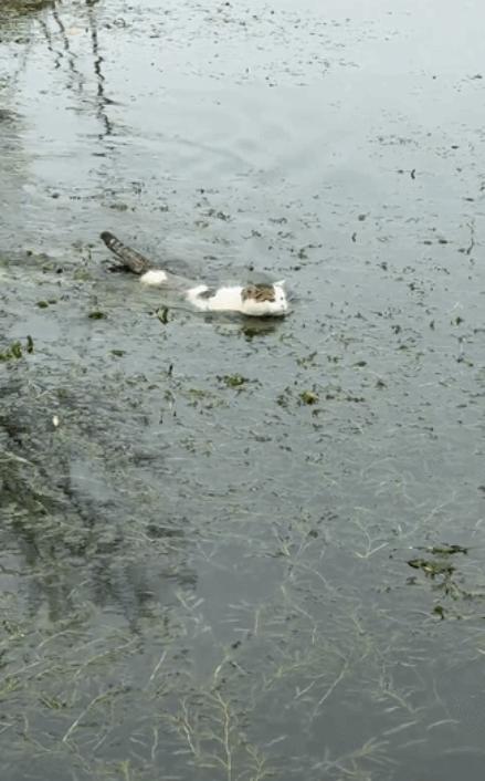 “太出乎意料了”近日江苏一男子在河对岸喊自己养的猫咪回家吃饭,猫咪直接下水游了过