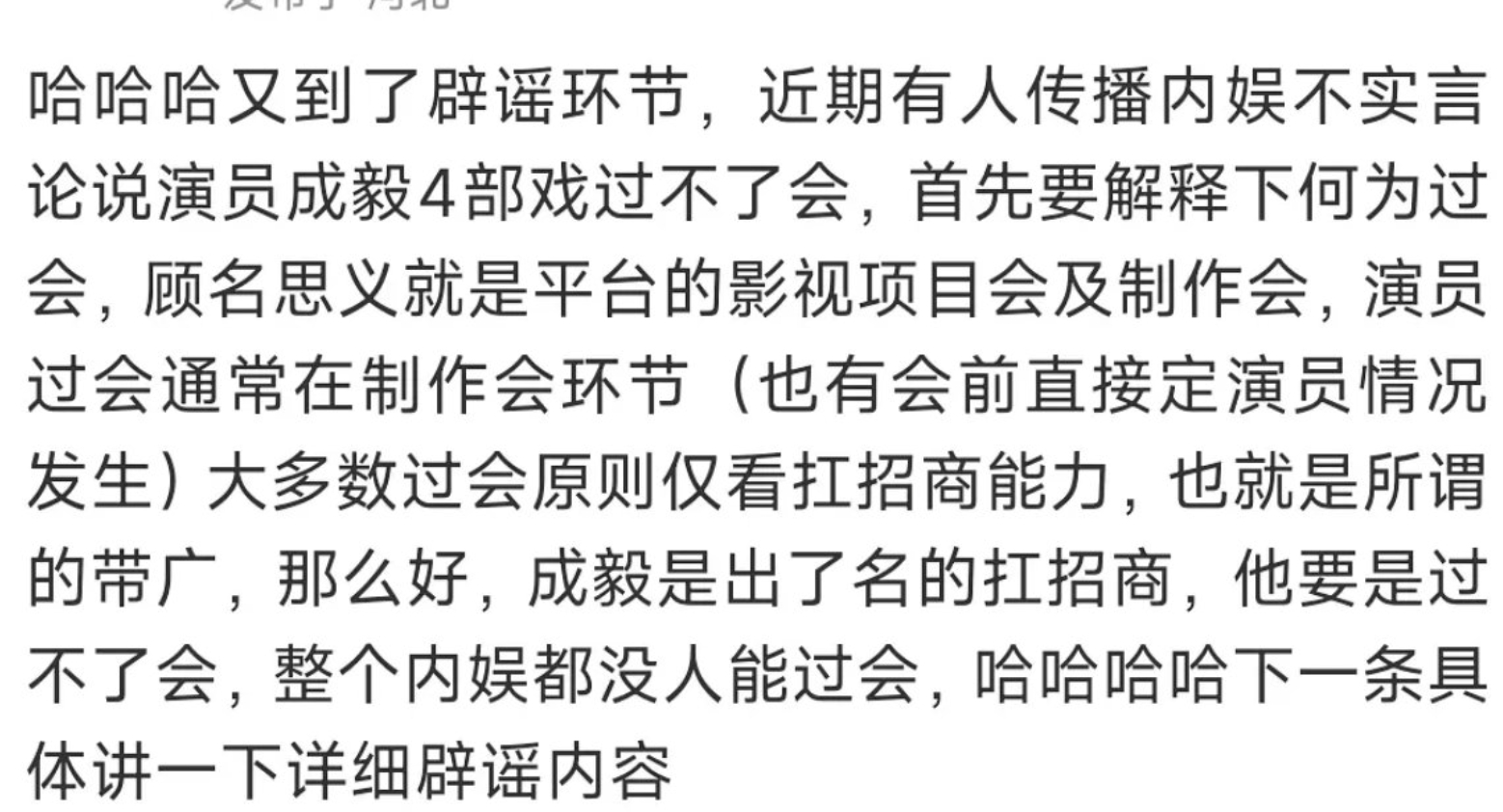 网友曝成毅不过会就没人能过会,此前的曝的有人四部剧不过会不是成毅。