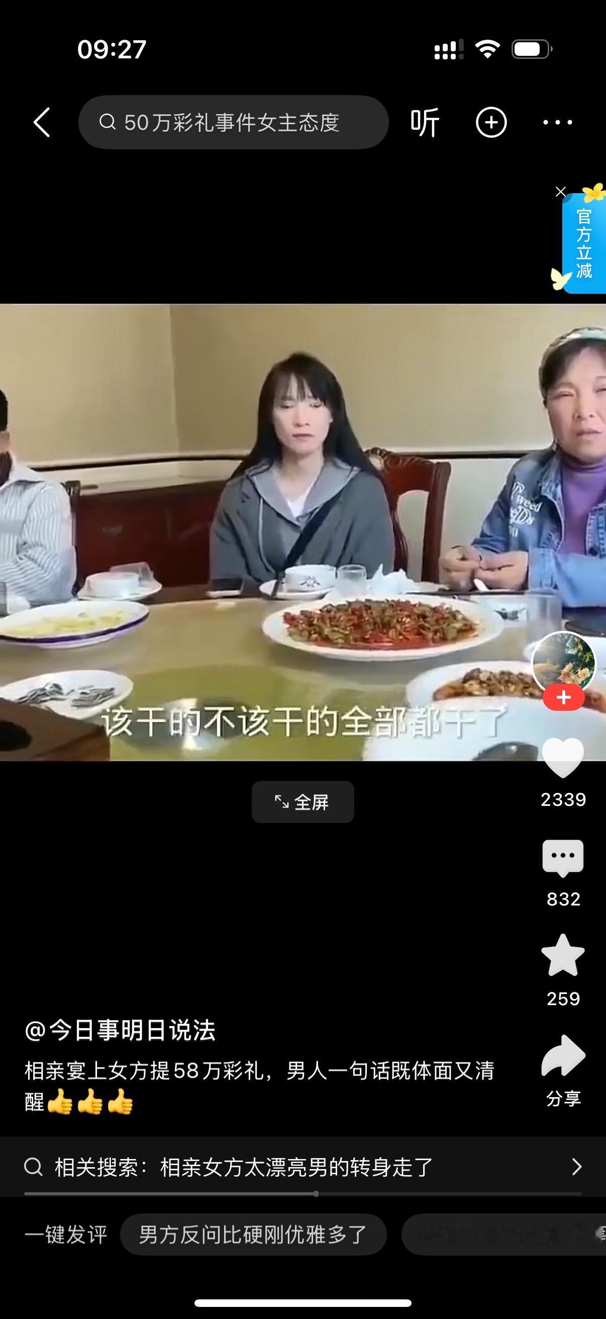 女方妈妈直接提出彩礼要88万。男子说你女儿长得这么漂亮,别说88万了,就是188万,我也要啊。母子三人非常高兴,觉得能成了。男子却突然提出说,有几个问题要问一下,希望女方能如实回答。女方说一定如实回答。男子说婚前能接受gpa检查吗?女方摇摇头。男子说那彩礼减去30万。男子又问,有过同居史吗?女子点点头。男子说,既然是二手的,彩礼再减30万。男子再问,和几个前任同居过?女子想了想说,7,8个吧。男子摇了摇头说,这已经不是二手的问题了,这是7,9手了,完全不值钱了。倒给我彩礼我都不要了。女方三人脸都绿了。