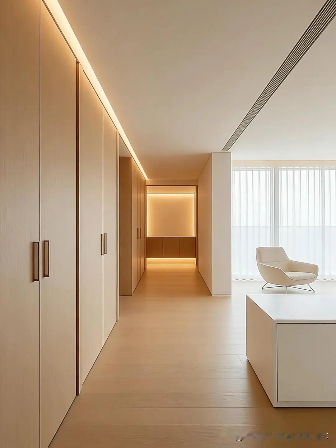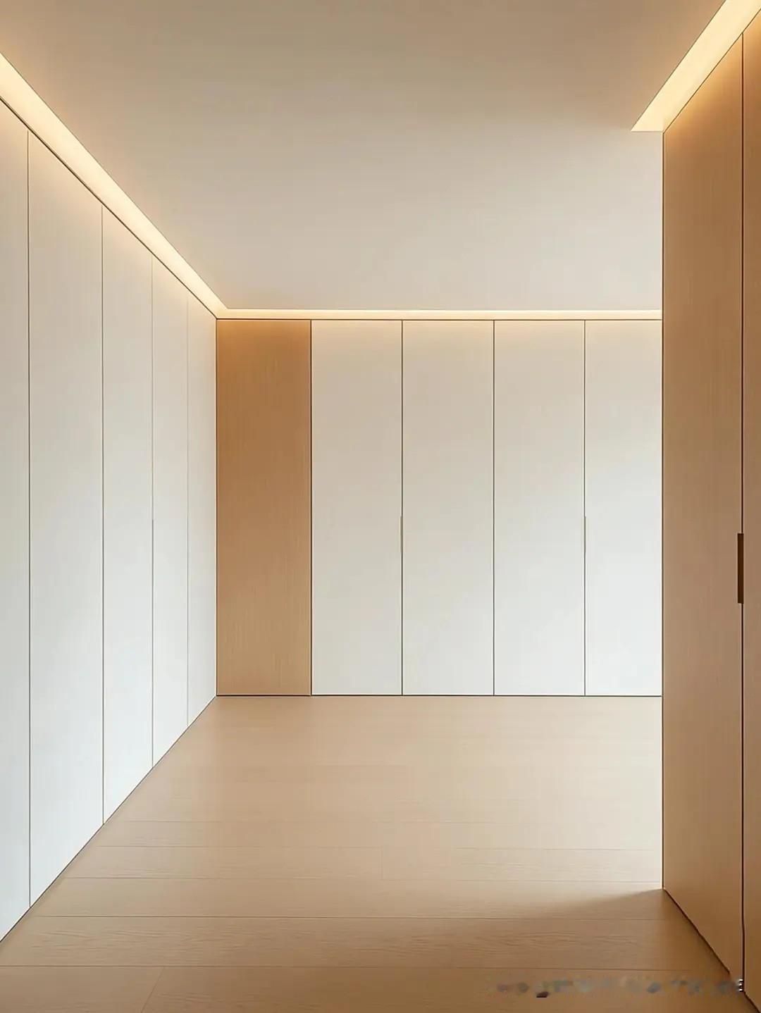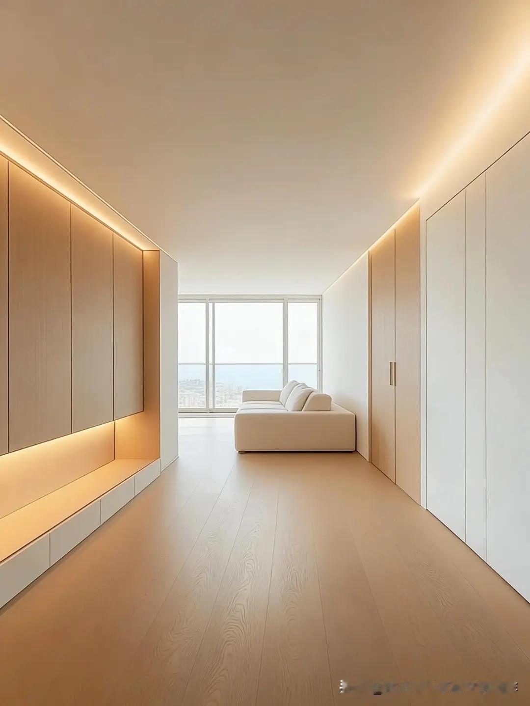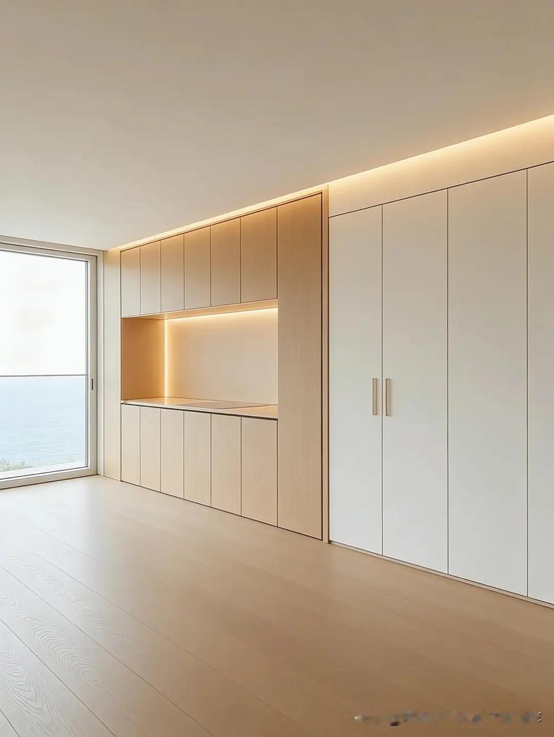 极简原木风精妙地将实用性与整体美感相融合。就像隐藏式储物柜,能让杂物在全屋悄然遁形,使空间显得开阔且颇具高级质感。