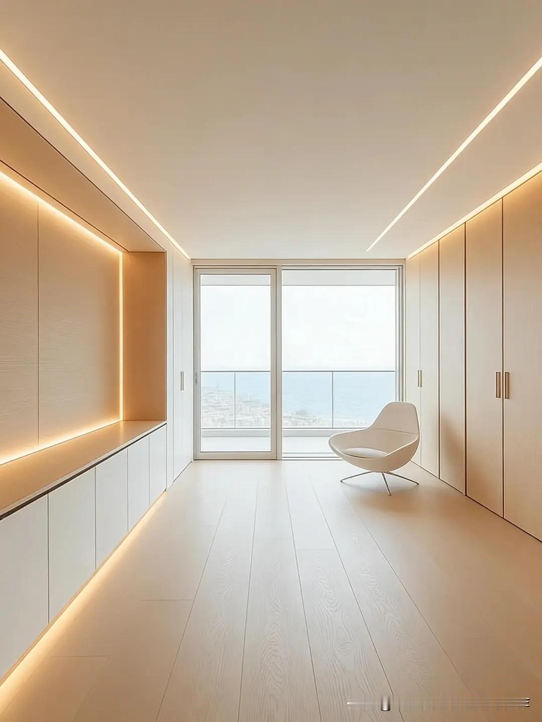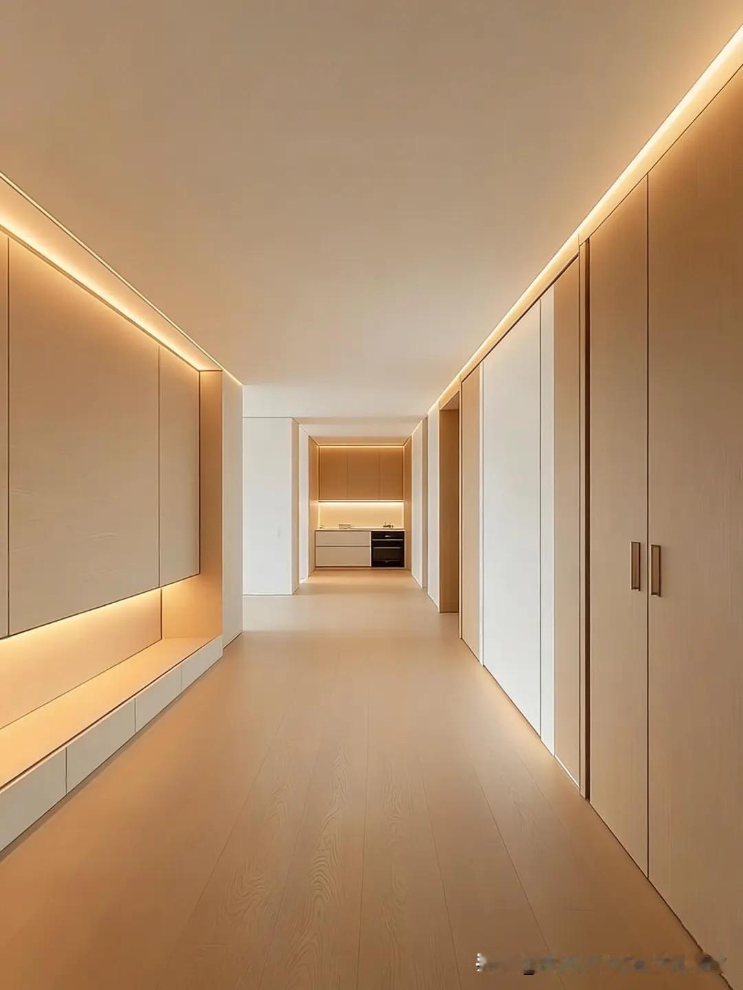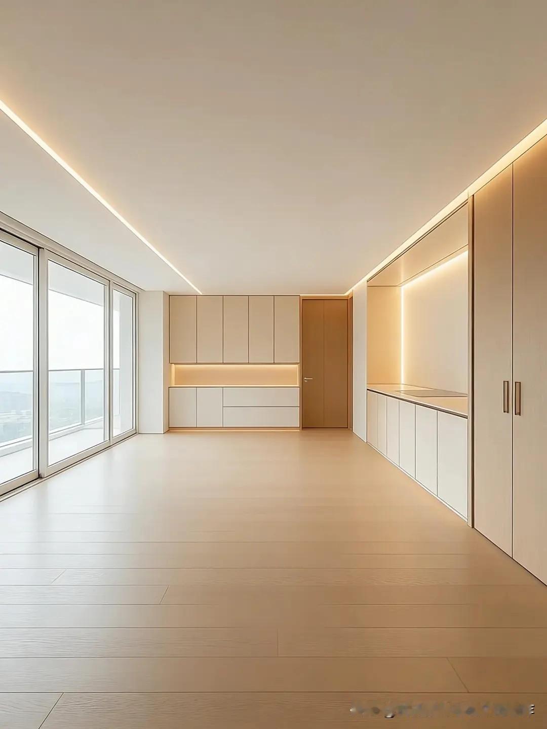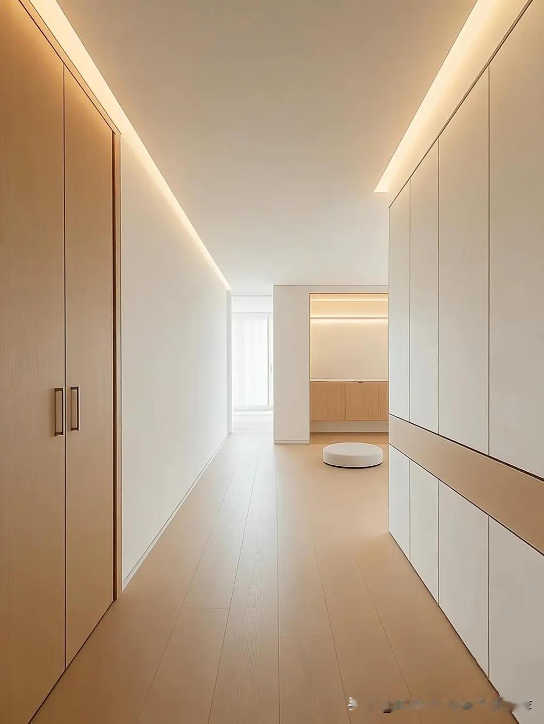 极简原木风精妙地将实用性与整体美感相融合。就像隐藏式储物柜,能让杂物在全屋悄然遁形,使空间显得开阔且颇具高级质感。