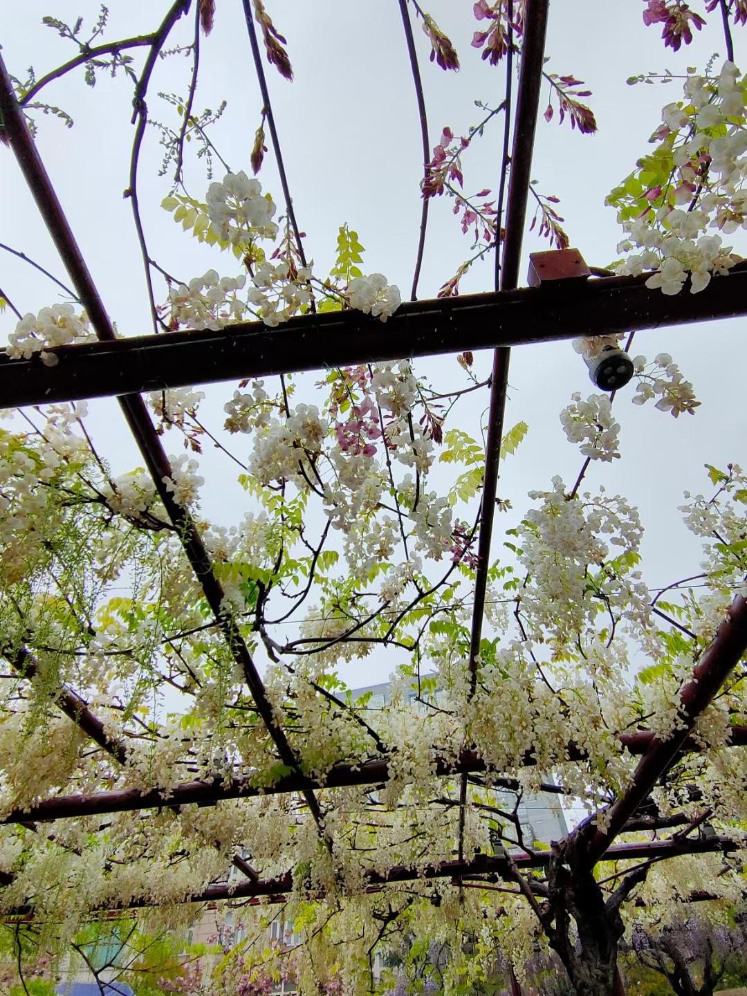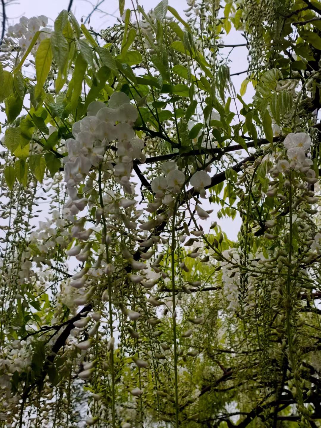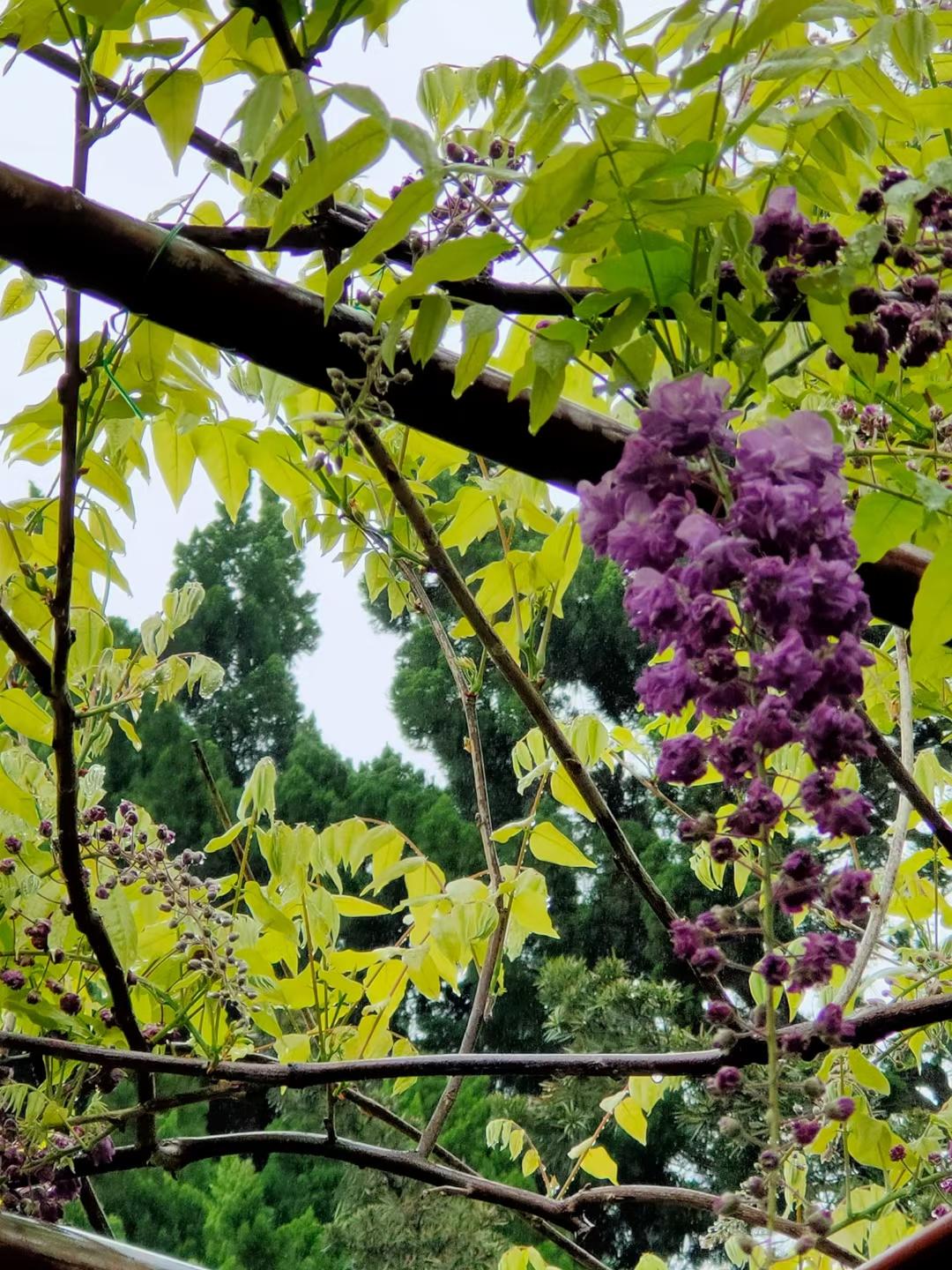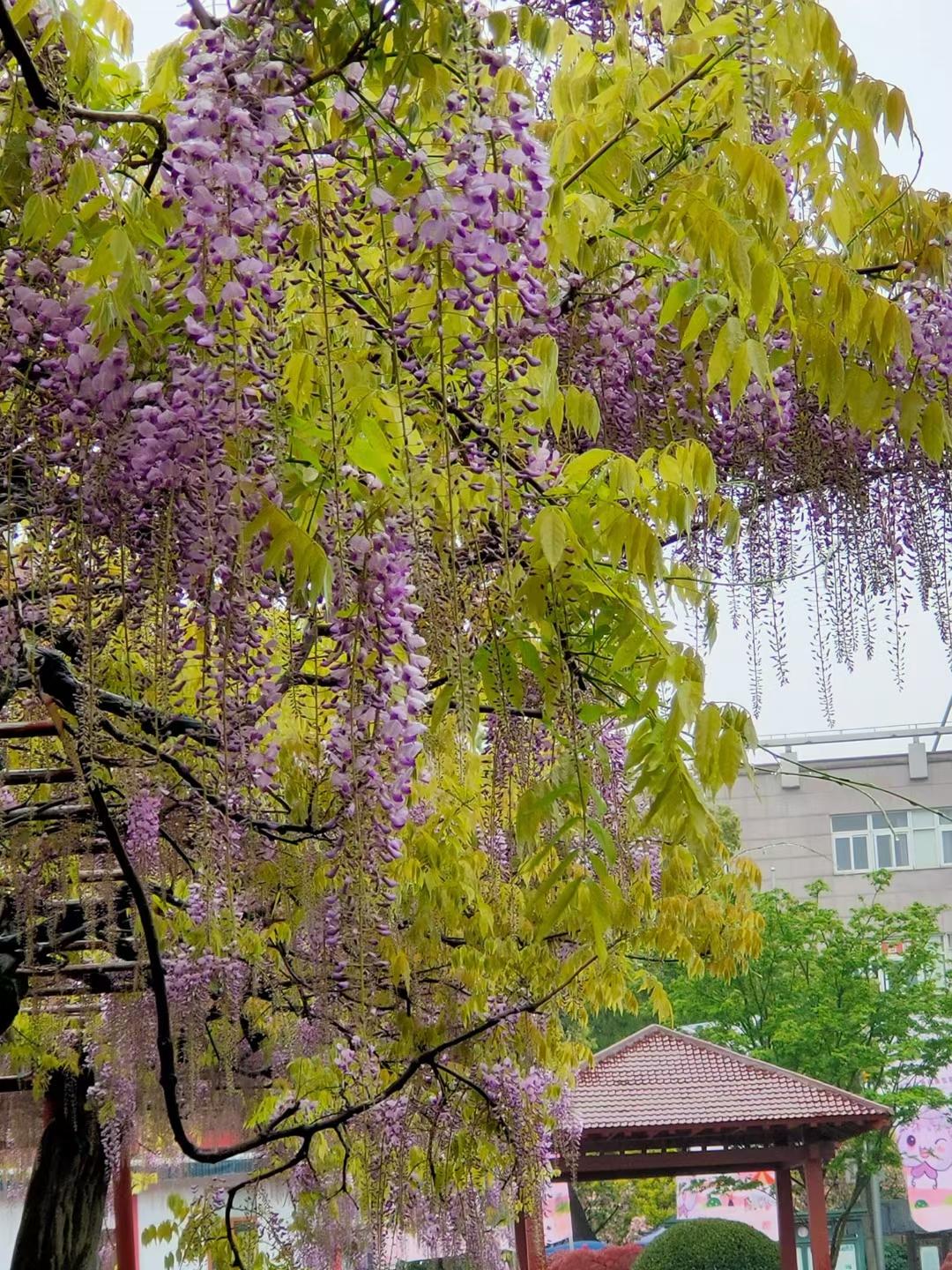 (运用比喻手法,生动地描绘出紫藤花充满活力、生机盎然的形态,赋予花朵以生命与情感。)