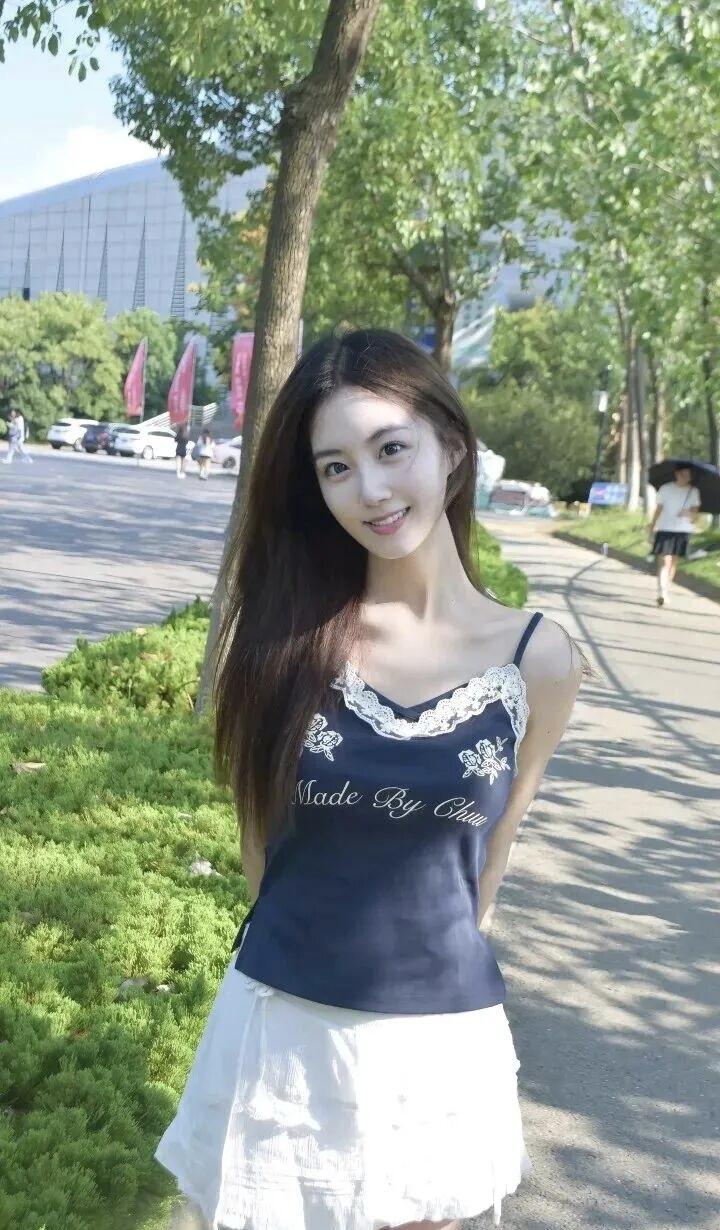 夏日清新穿搭,白色荷叶边裙搭配深蓝色上衣,甜美又时尚!