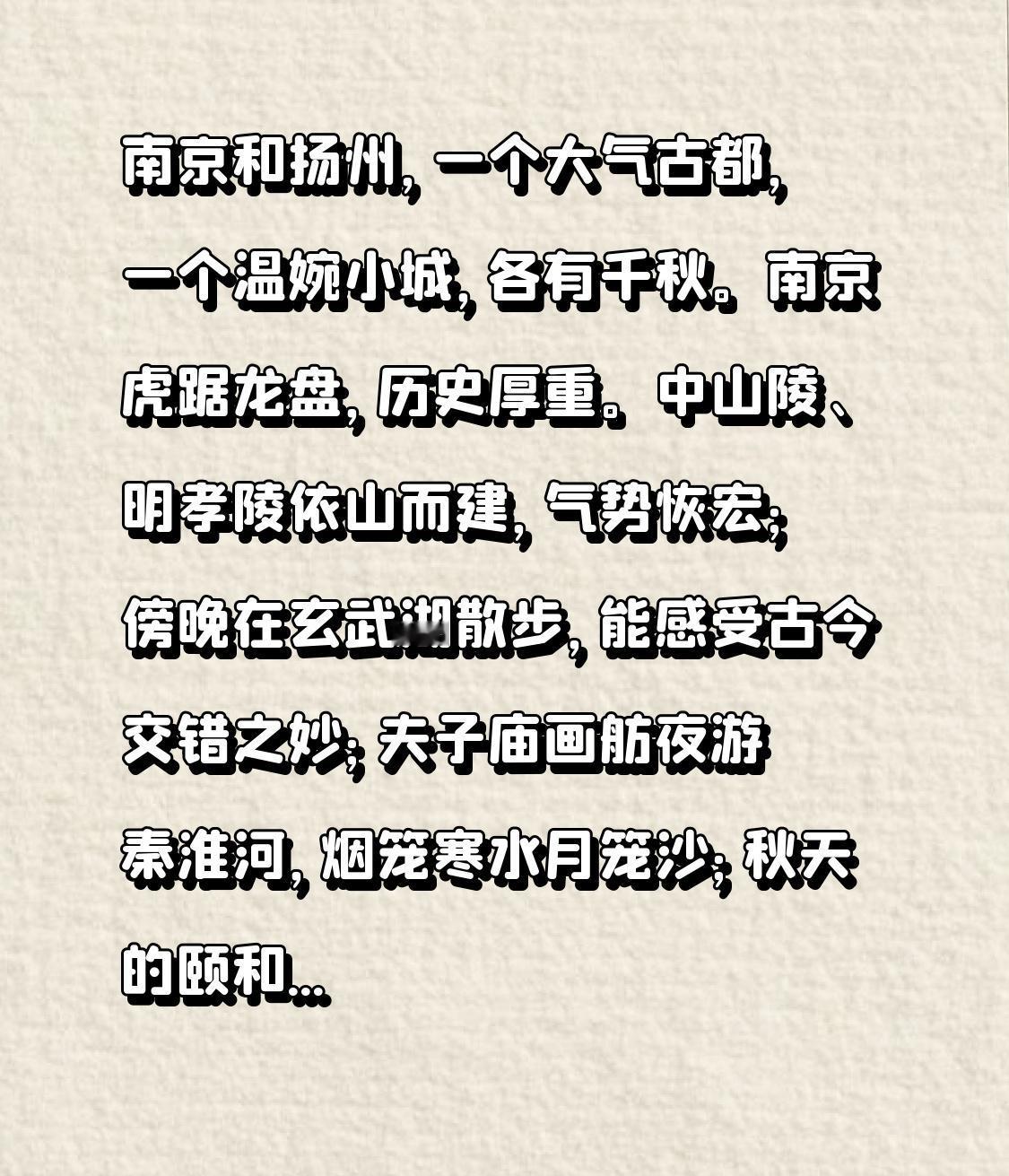 南京和扬州,一个大气古都,一个温婉小城,各有千秋。