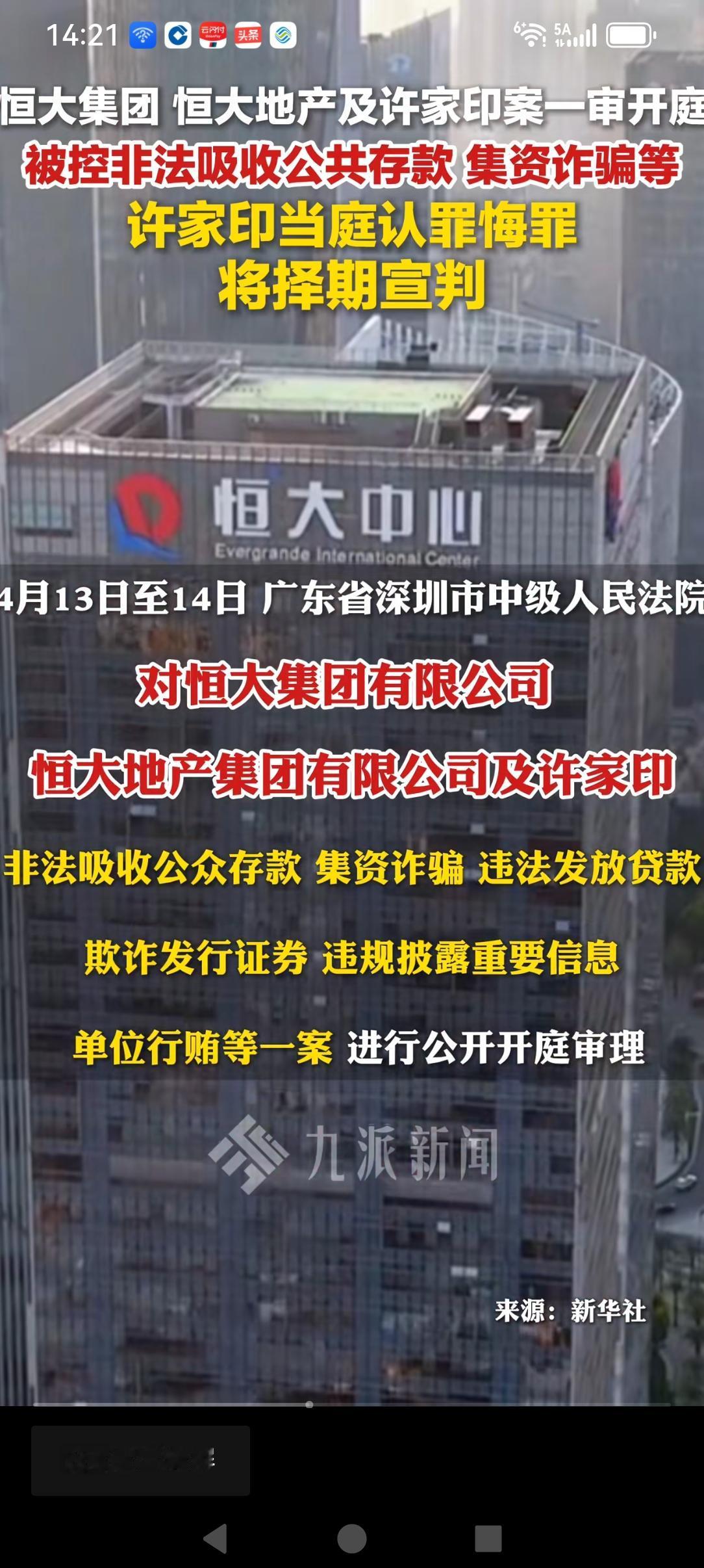 近日。深圳市中级人民法院审宣判了许家印相关的八项罪名,许家印当场称认罪。