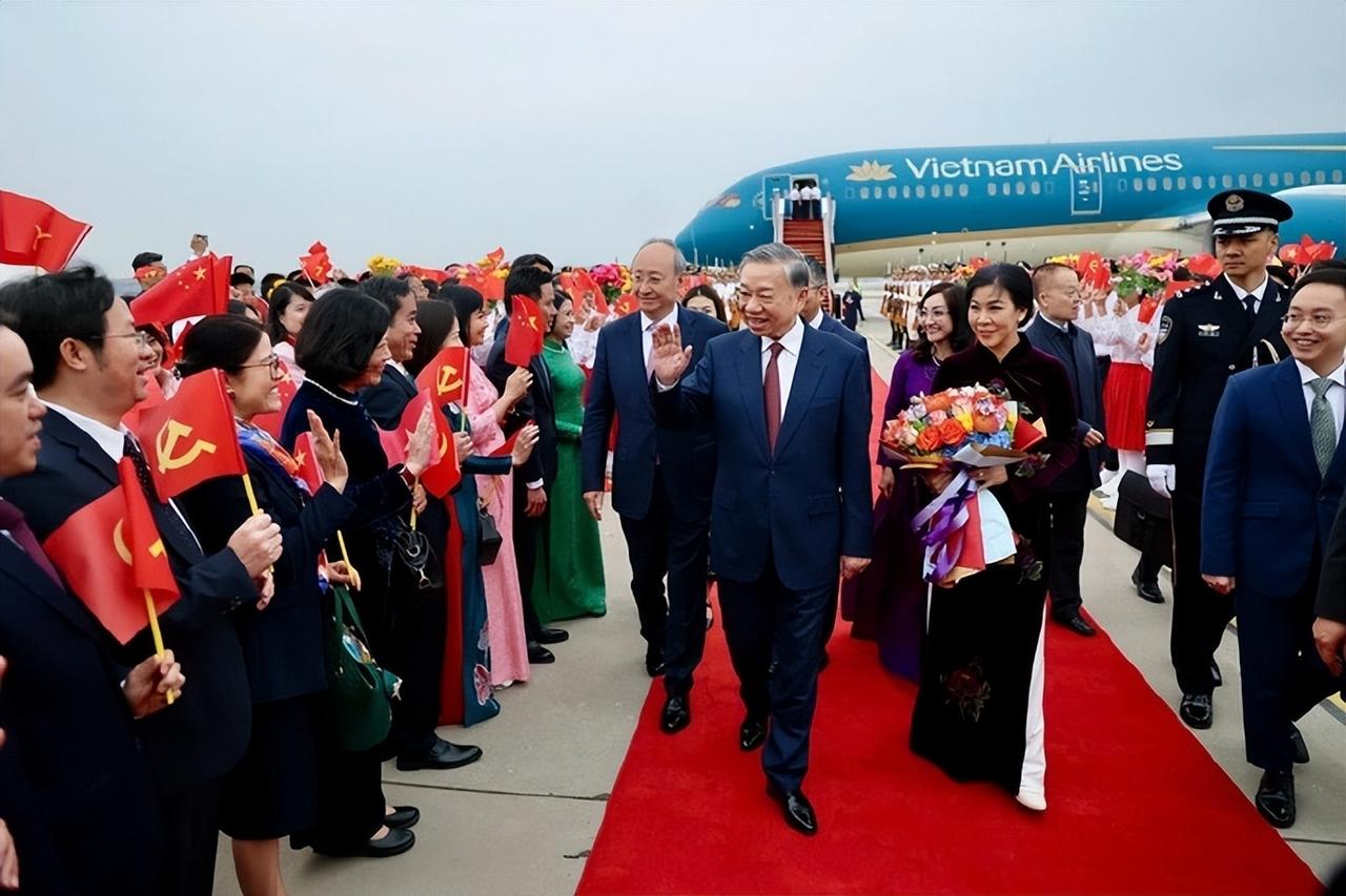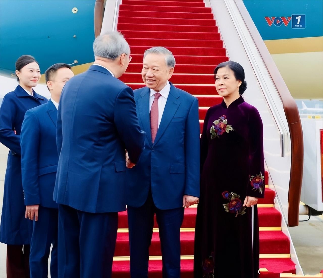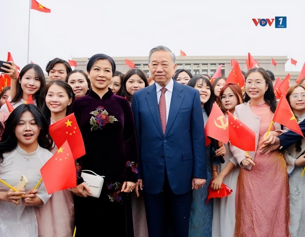其实在2024年的时候,越南第一夫人和老公苏林来北京的时候穿的也是奥黛,尤其是穿红色的奥黛长裙更加漂亮也很年轻,毕竟这样的服饰是越南的 “流动文化名片”,承载着数百年的服饰传承,是民族身份的鲜明符号。越南第一夫人身着奥黛亮相,就是在国际舞台上最直观的文化输出,向世界传递越南的文化底蕴与民族精神。让文化交流成为政治对话的温柔注脚,比千言万语更有力量。