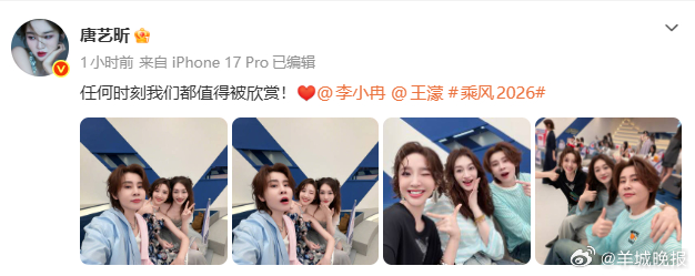#唐艺昕晒心愿便利贴三人组合影#【#唐艺昕晒与李小冉王濛合照#】4月14日,晒与李小冉、王濛合照,配文“任何时刻我们都值得被欣赏!”。网友:浪姐SHE版《心愿便利贴》已经晋升我近期循环最多的舞台了。(现代快报)更多消息:#罗志祥方否认猝死传闻##曝许光汉周子瑜恋情##曝某艺人开年掉了13个代言##王星和女友回应不结婚的原因##宋祖儿被男粉求婚#(编辑:杨雨桐;审签:谢杨柳)