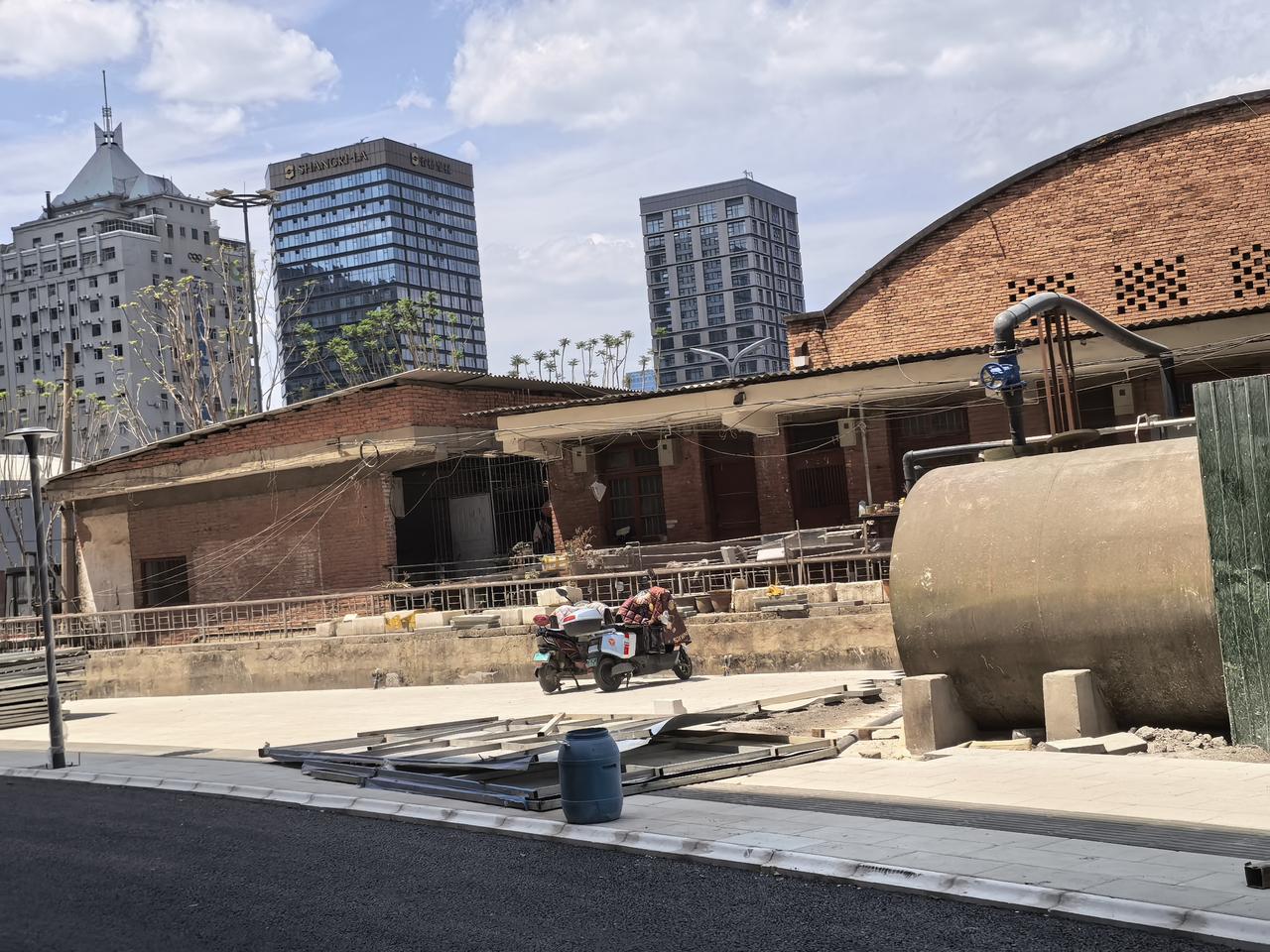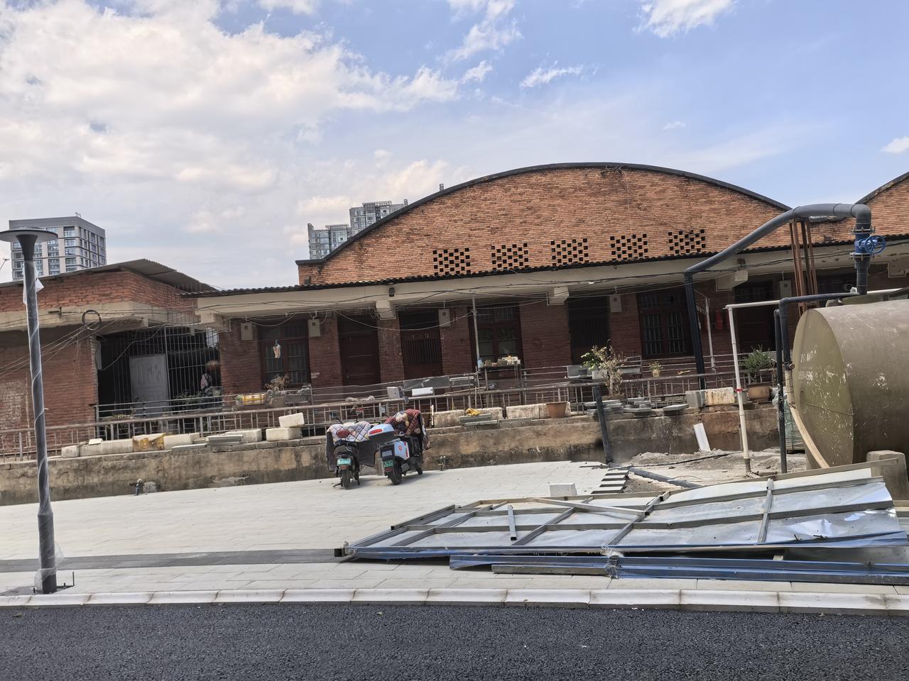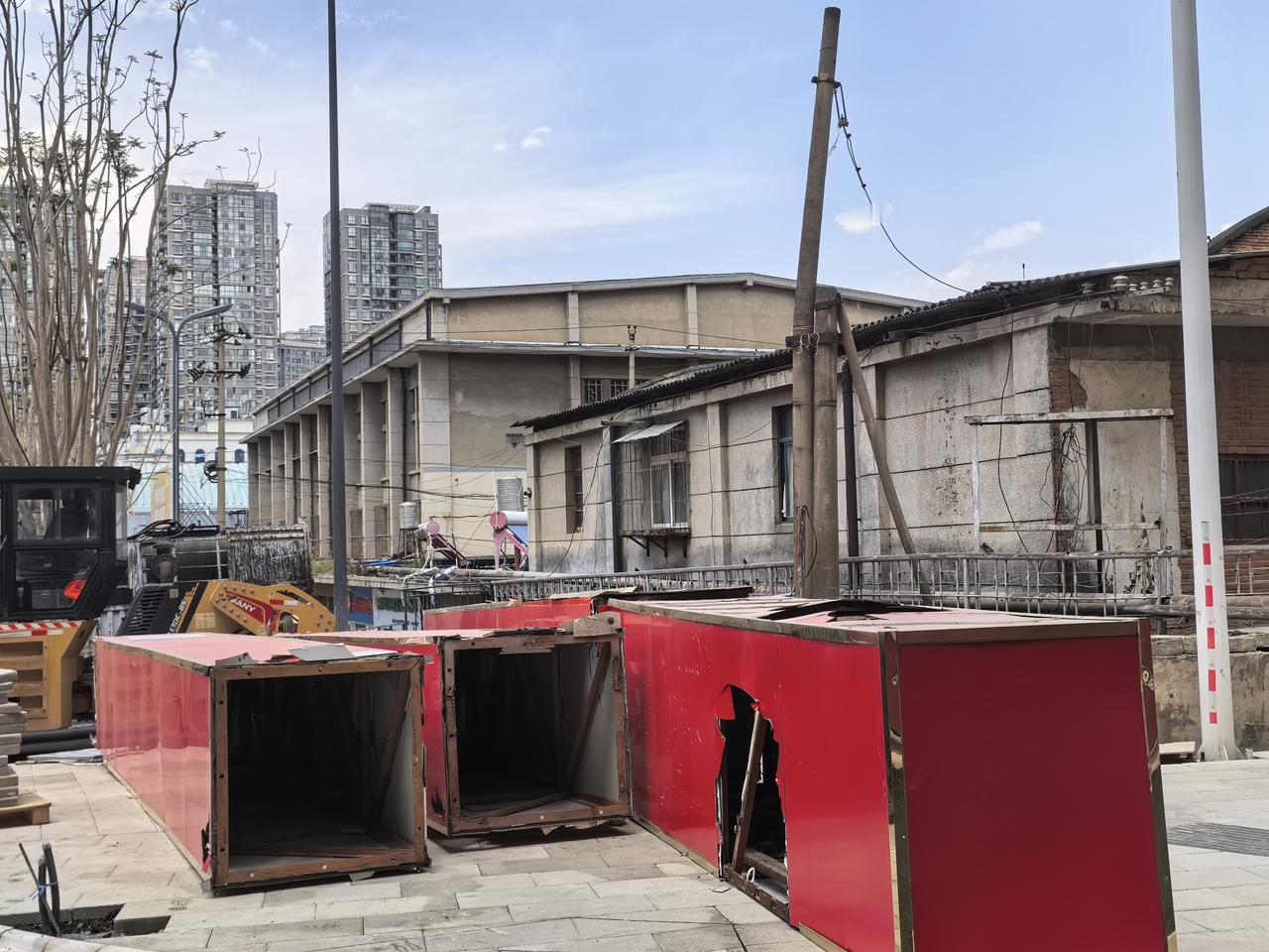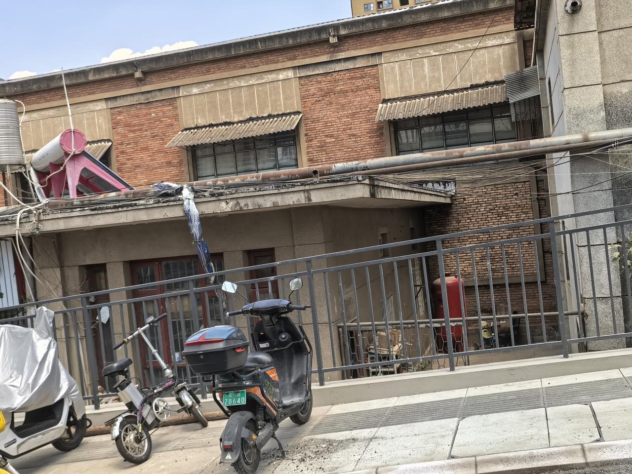 最近的离拓东体育馆只有二十来米,而且里面还有好多人住,一两层的住完,很老的设计,这种红砖房,铁皮,铁棚,还有石棉瓦盖的,铁皮盖的,这个一大片旧棚子得有四五十年了吧!