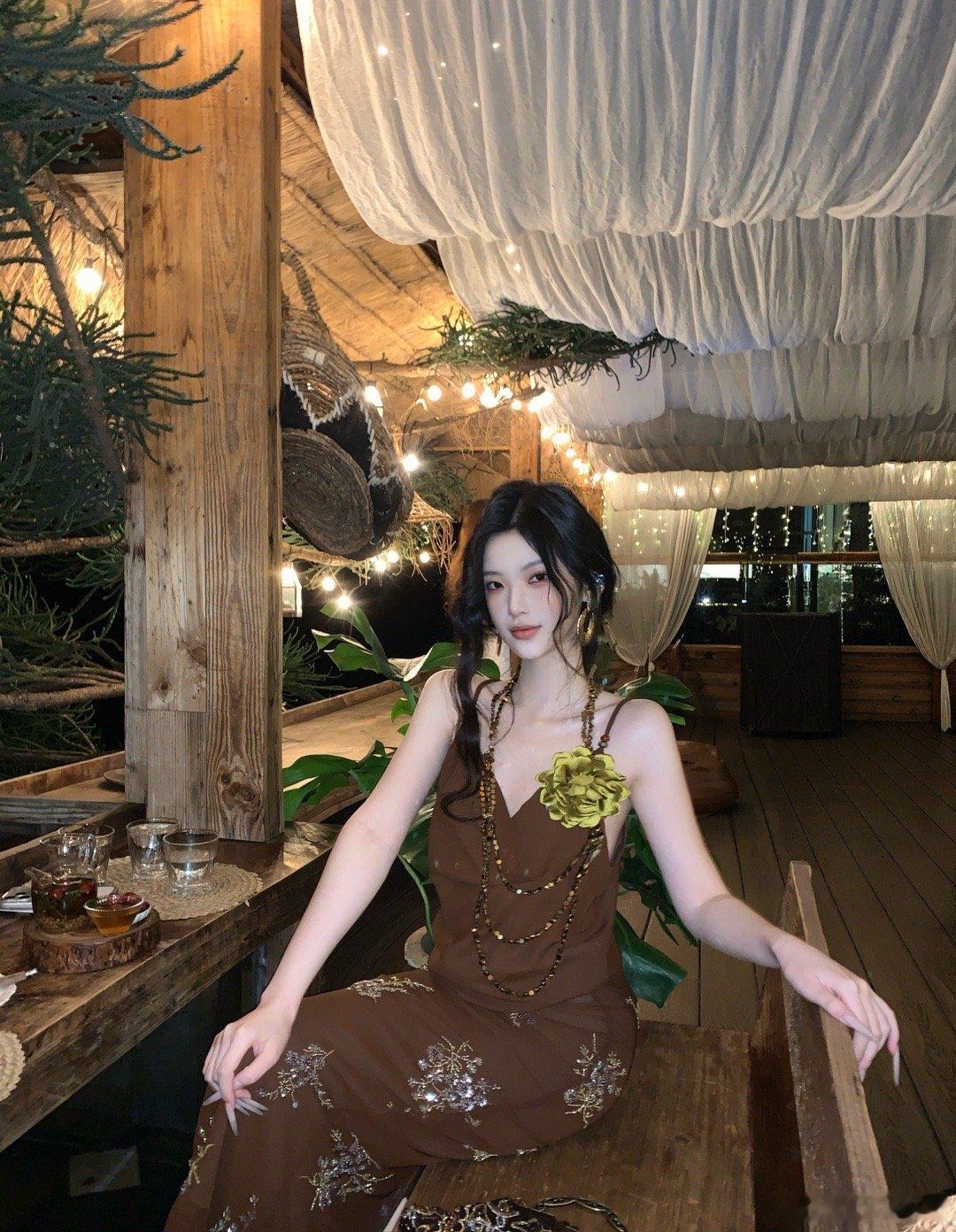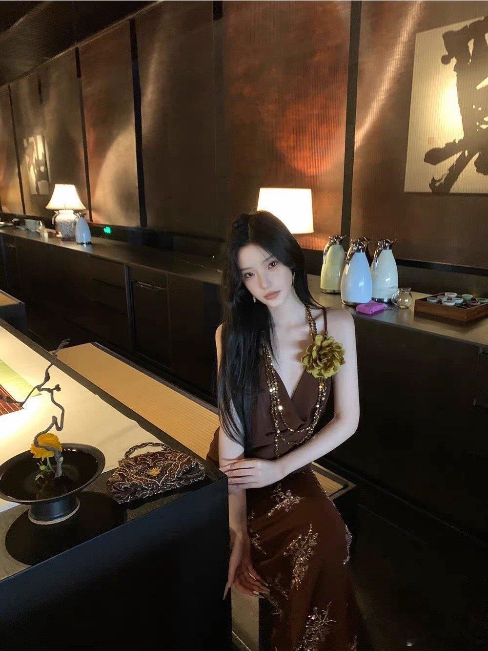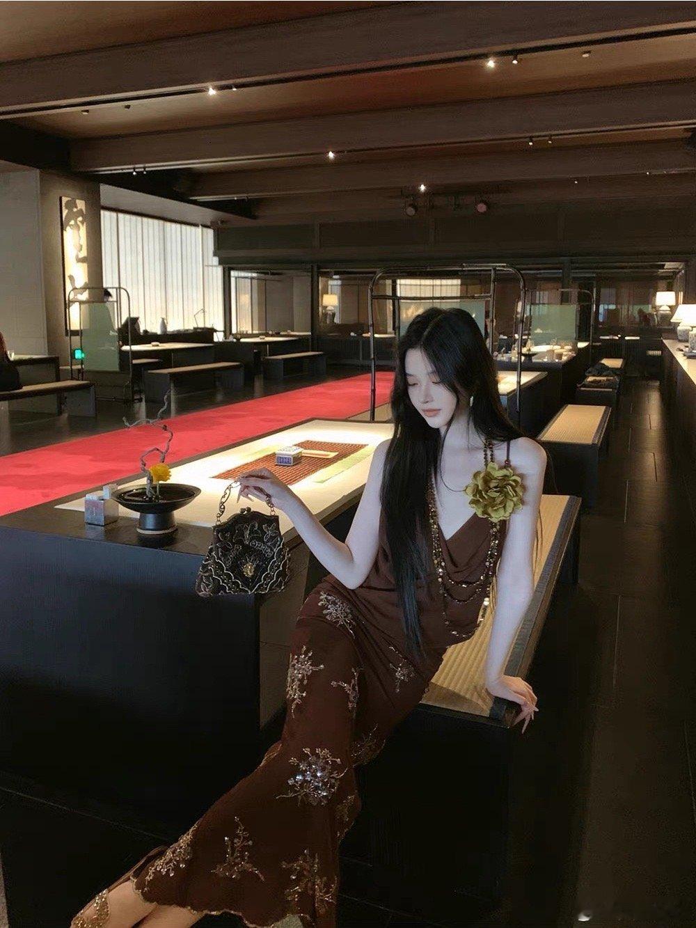 𝑴𝑶𝑺𝑺 𝟒.𝟏𝟓/𝟐𝟎:𝟎𝟎𝒑𝒎【珠褐流光】🤎🤎新中式原创重工珠绣吊带+半裙套装采用荡领设计,优雅修饰颈部与锁骨线条,弱化肩颈线条的硬朗感,营造慵懒柔美的氛围。简约无袖版型,干净利落,可单穿或外搭开衫、罩杉。裙身点缀重工珠绣花卉纹样,以细腻绣线与亮面珠饰还原花枝形态,精致立体,在走动间闪烁微光,尽显新中式的雅致韵味⚜️新中式