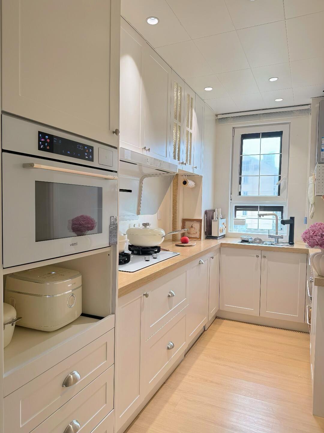 2、4平小厨房,连转身都难,偏偏是巴掌大的地方,却也顺手好用,能塞下厨房所有电器。