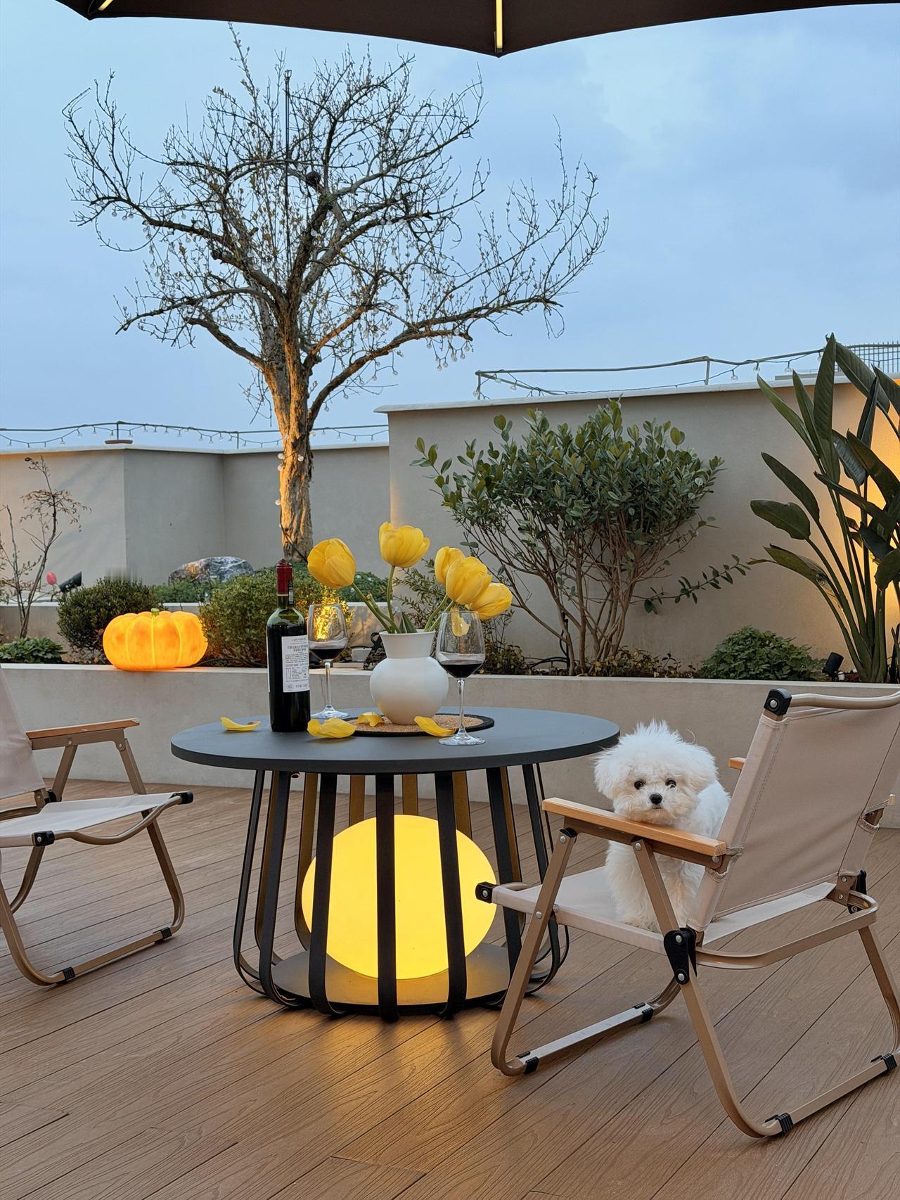 拥有一个露台花园,太爽了,日落的柔和光线自带滤镜, 把氛围感拉满。