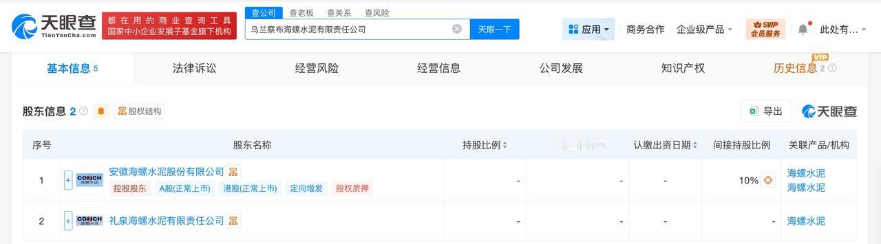 海螺水泥在乌兰察布成立新公司 注册资本3亿