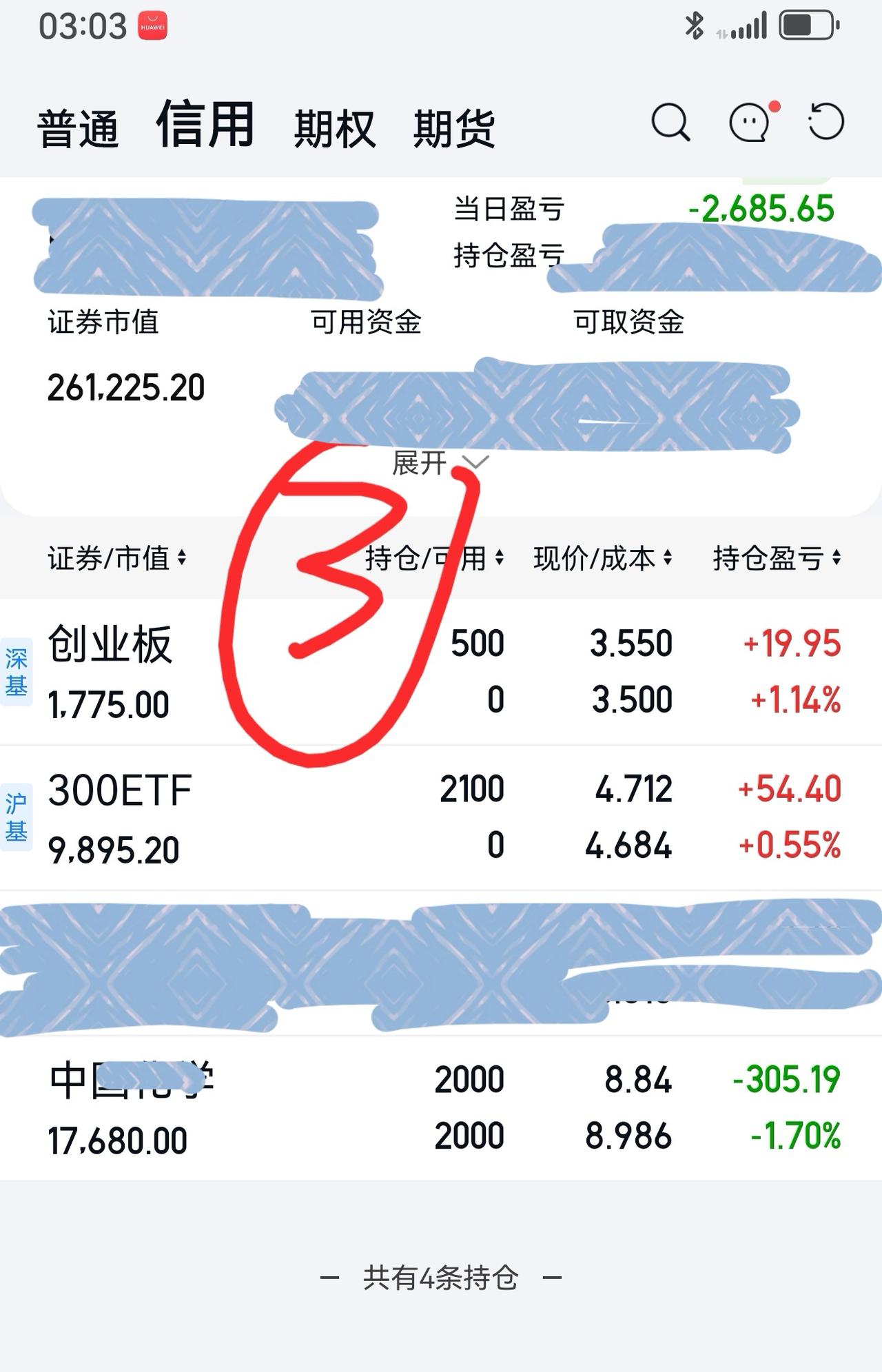 账户③,新开300E,创业板E,持有中化。